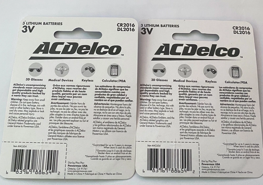 This ACDelco CR2016 3V Lithium Coin Cell Battery Calculator - Watch Electronics Button 2pk/6ct is a reliable choice for powering your devices. With a voltage of 3V and a battery size of CR2016, this battery is perfect for single use and multipurpose batteries and power. Qty. 2 New Factory Sealed Packages Each Pack contains 3 Batteries - You will receive 6 Batteries.