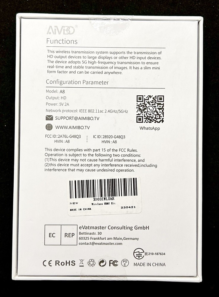 Brand New AIMIBO Wireless HD Transmitter and Receiving Kit No internet required HD Transmission Multi Device Mirroring Good for Home Theater and Commercial Office