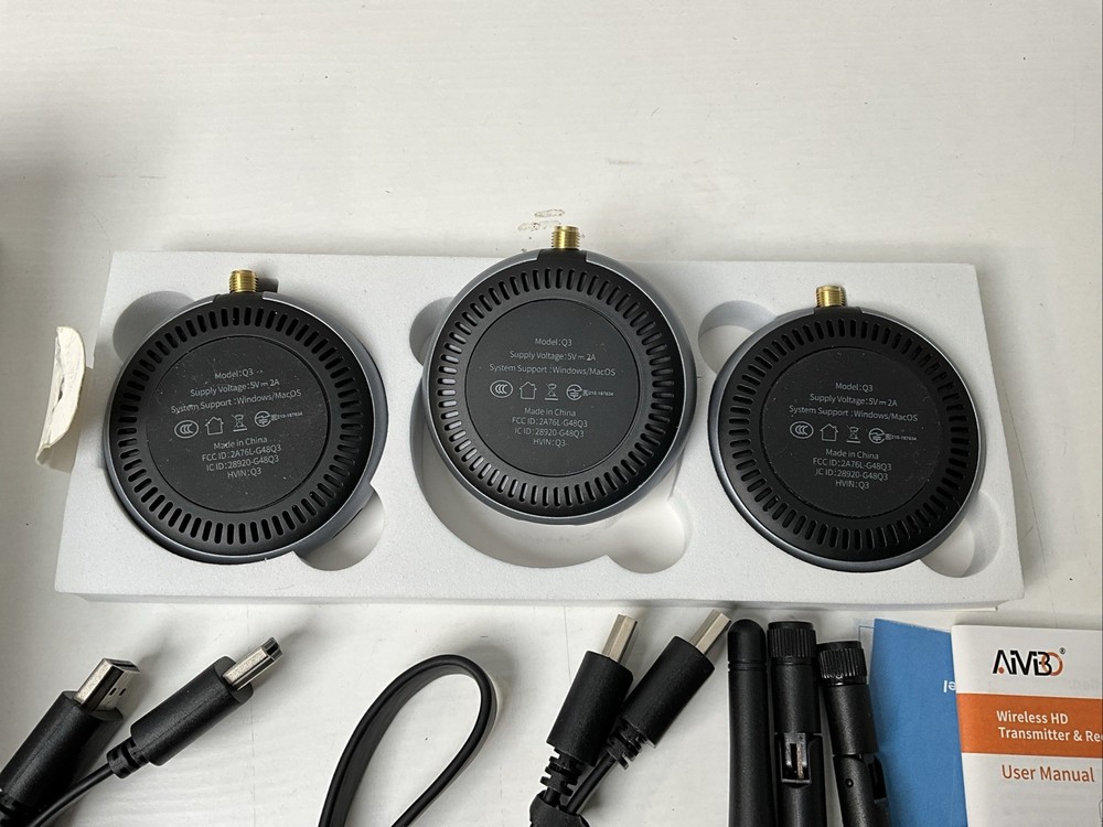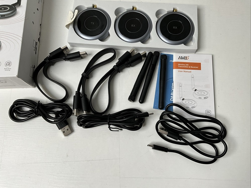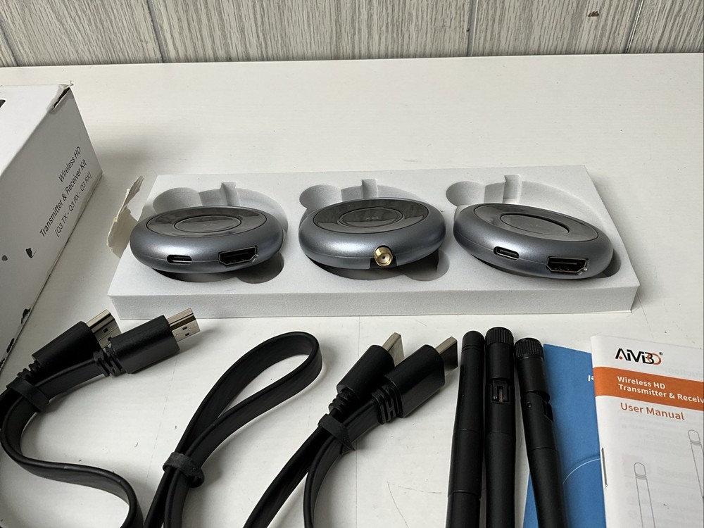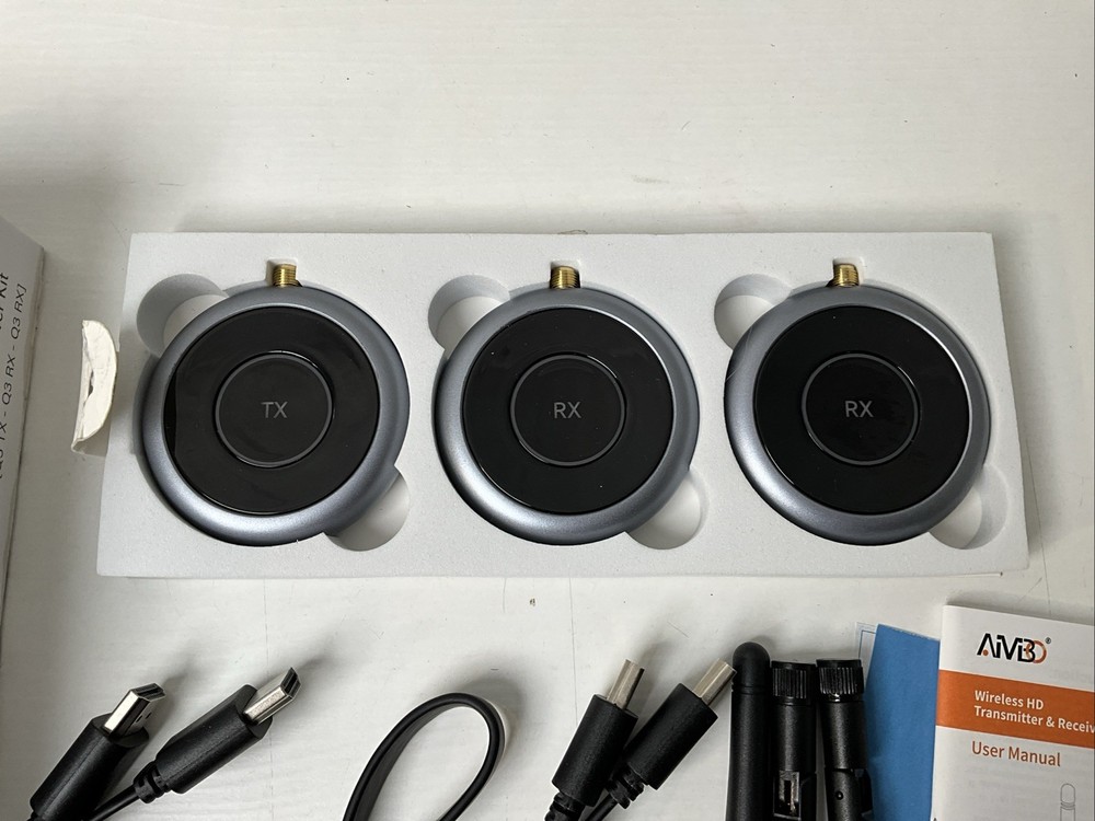 Tested and completely working transmitter and two receivers in original opened box with paperwork and cables. No damage, distress, or identifiable defects. Will be packaged and shipped carefully same or next day by an experienced seller.