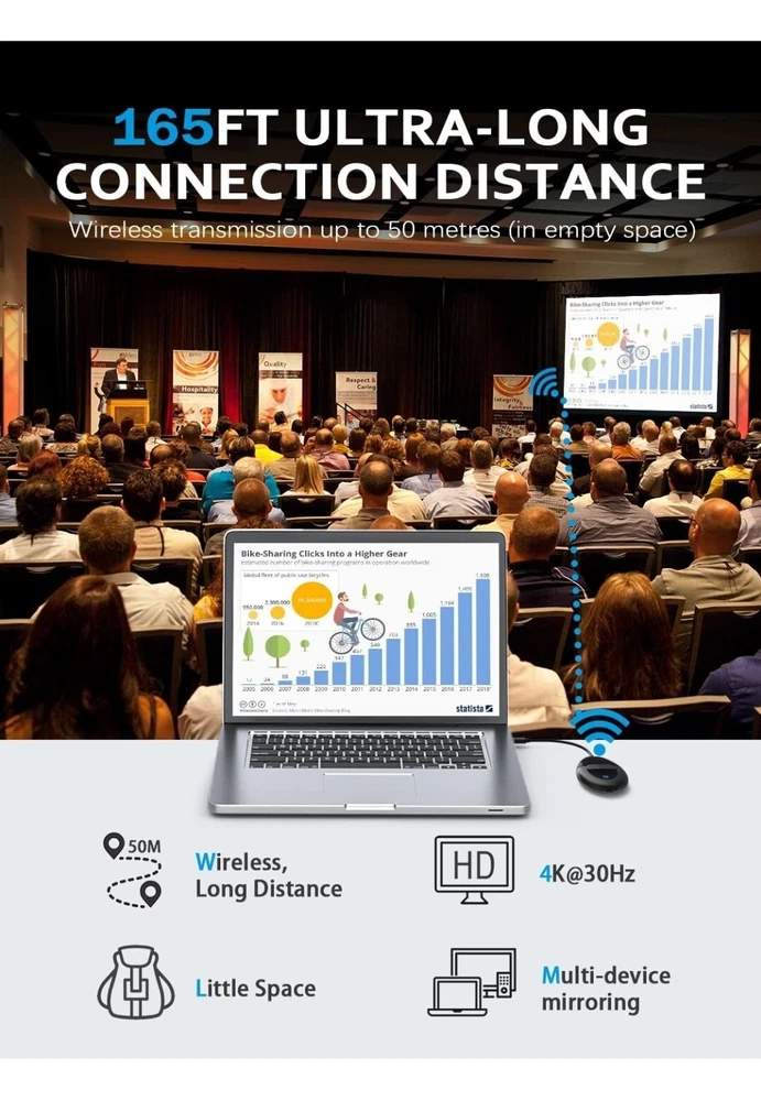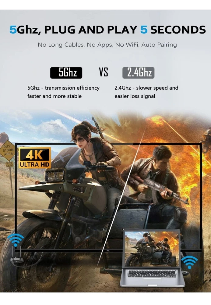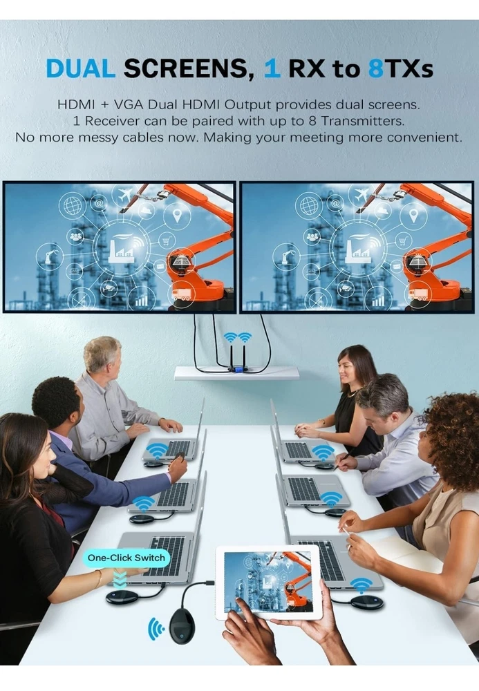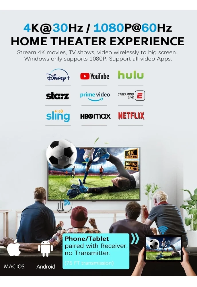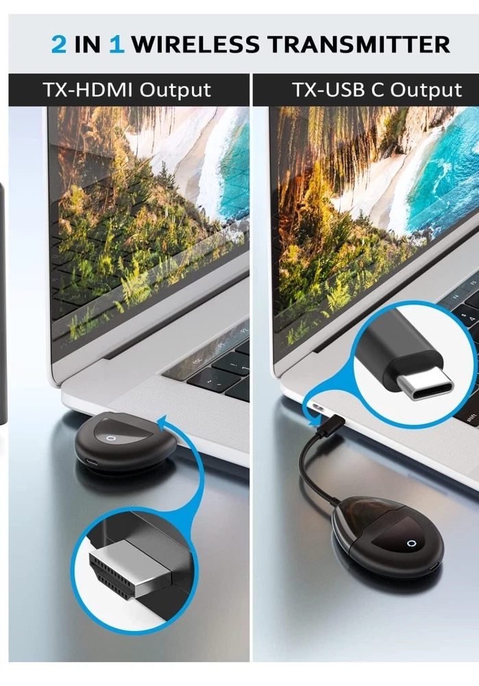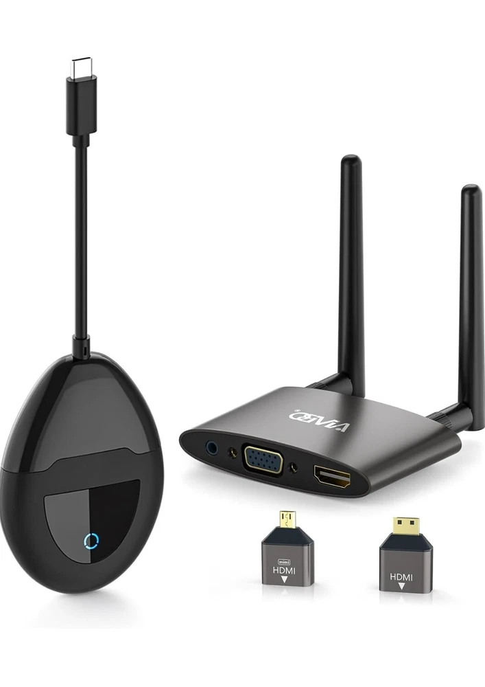Wireless HDMI Transmitter and Receiver 4K, USB C & HDMI Dual Transmit Ports, HDMI & VGA Dual Screens, 2.4/5G Streaming Smooth Video/Audio Extender 165FT/50M for Mac, Cable Box,Phone, Laptop,Blu-ray Experience high-definition audio and video transmission with the AIMIBO Wireless HDMI Transmitter and Receiver. This device allows for seamless streaming of 4K content and is equipped with USB C and HDMI dual transmit for maximum connectivity. The dark blue color adds a sleek touch to your tech setup. With audio inputs including HDMI, this device is perfect for any home entertainment setup. The AIMIBO Wireless HDMI Transmitter and Receiver is a must-have for anyone looking to upgrade their viewing experience.