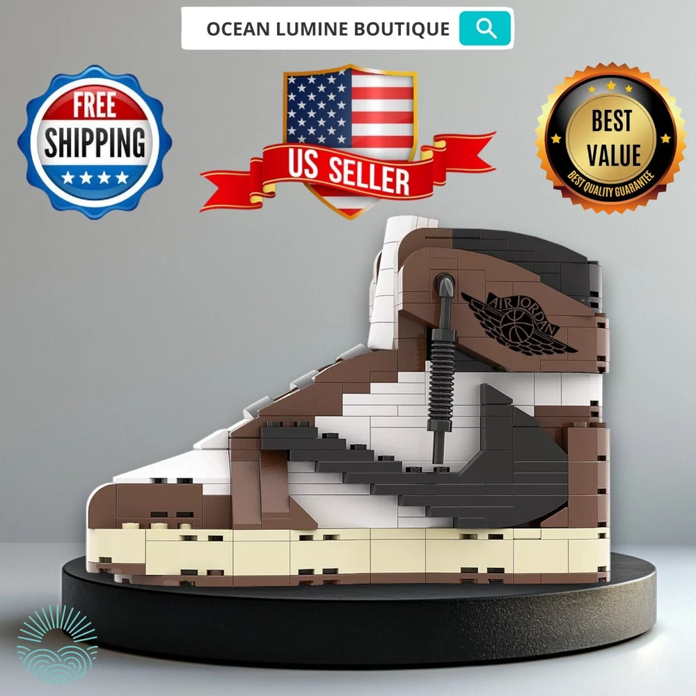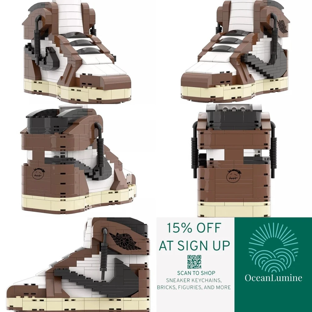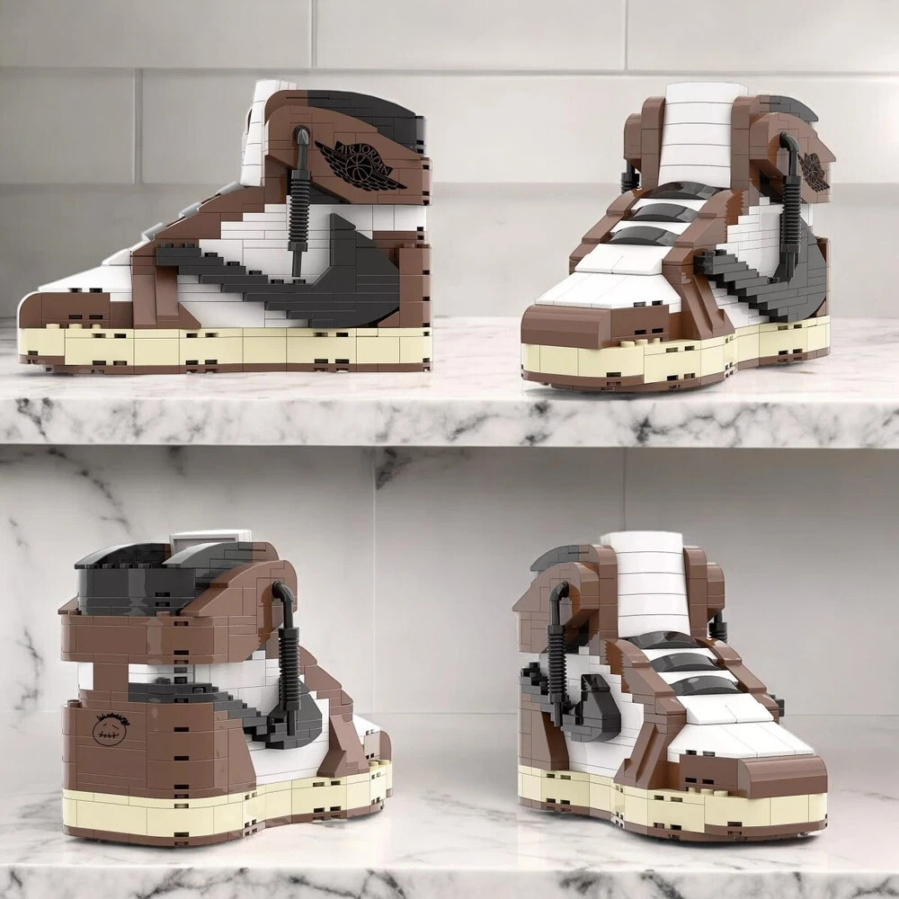 AJ1 Travis Scott Sneaker Building Bricks, Matching Key Chain, Puzzles Blocks Toy