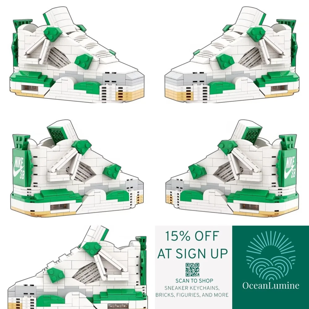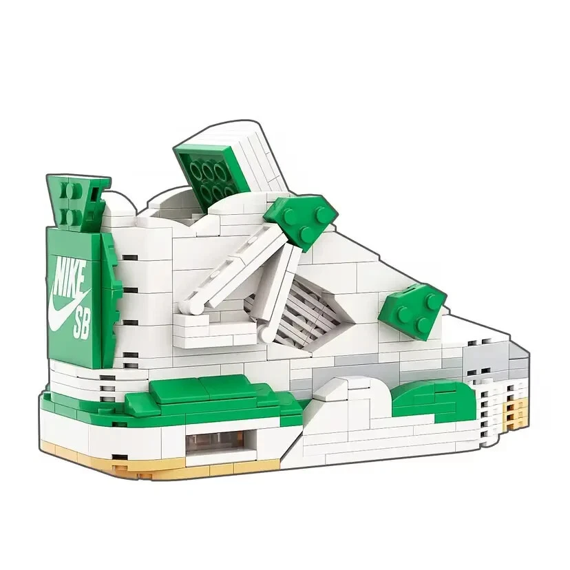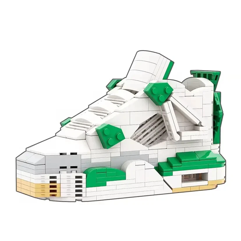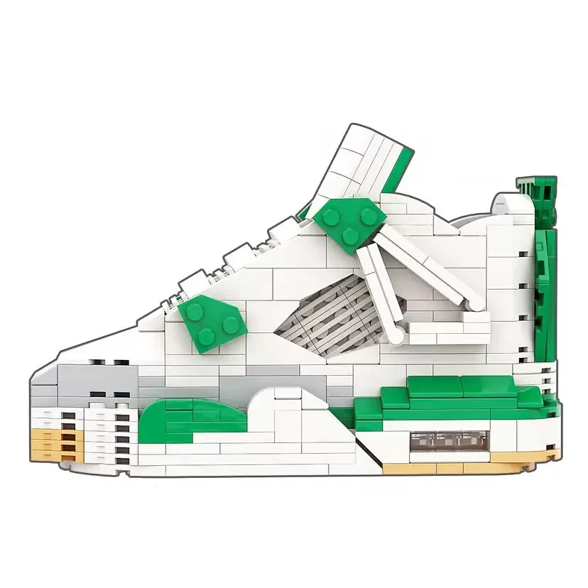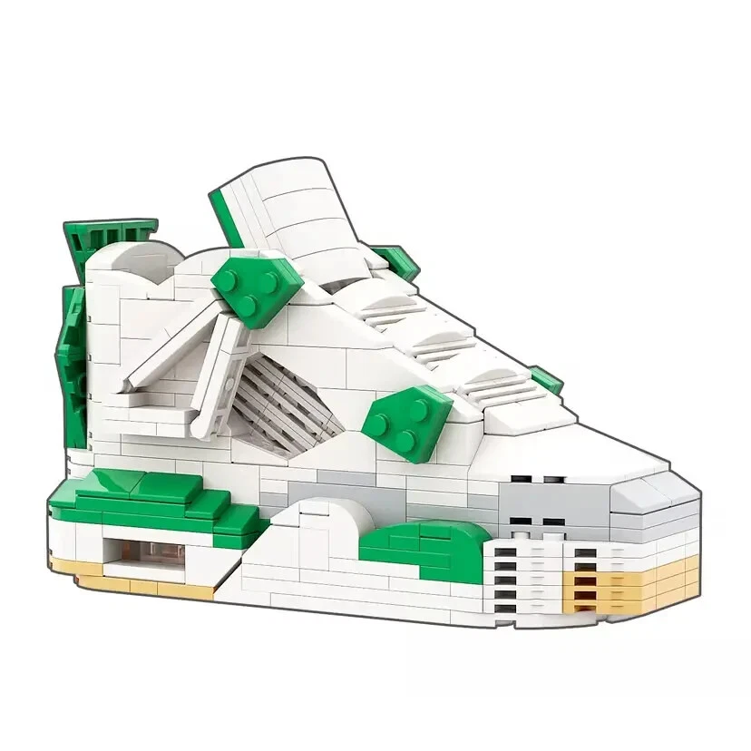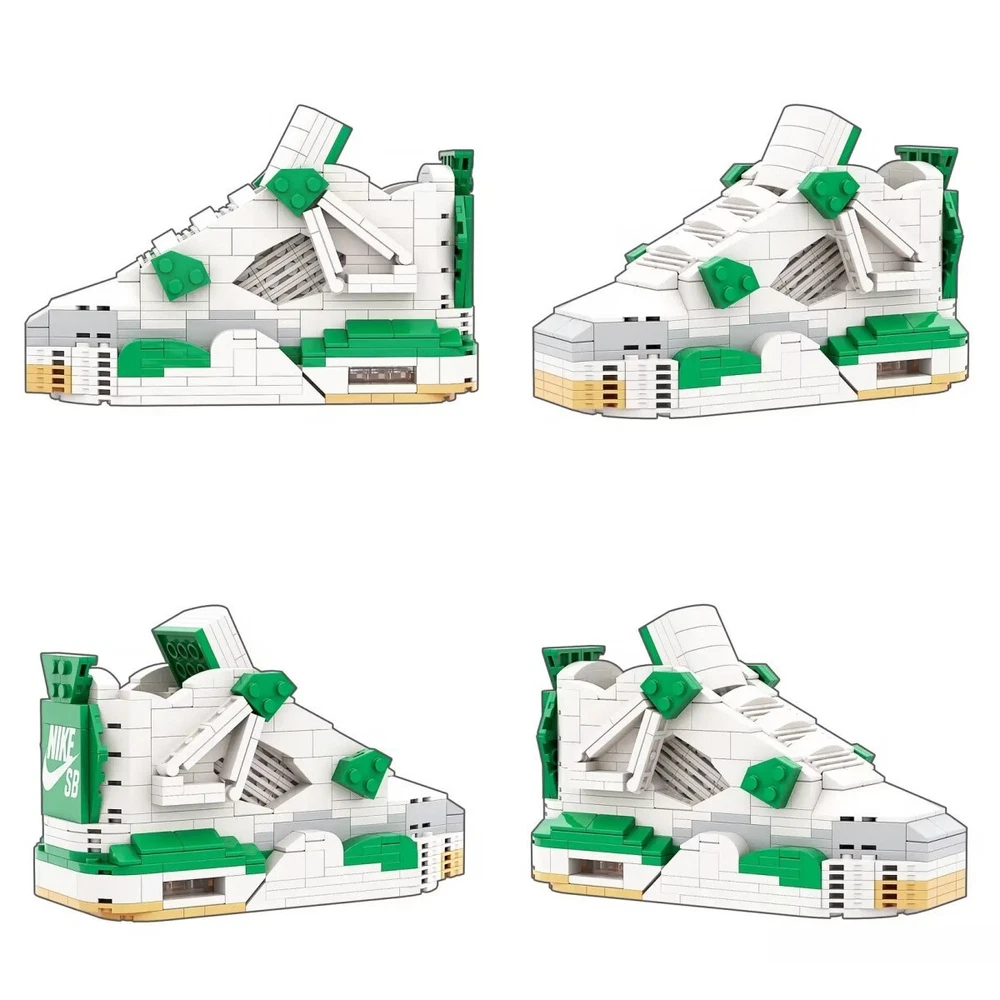 AJ4 Pine Green Sneaker Building Bricks, Matching Key Chain, Puzzles Blocks Toy