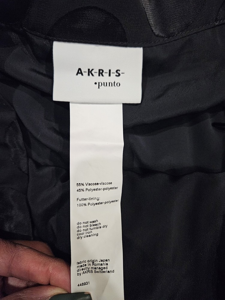 AKRIS Punto Polka Dot Midi Skirt SZ 10 Elevate your wardrobe with the chic AKRIS Punto Polka Dot Midi Skirt. A timeless staple for any fashion-forward woman, this skirt features a classic black color with an elegant polka dot pattern, creating a sophisticated and versatile piece that can transition seamlessly from day to evening wear. Crafted from high-quality viscose material, the skirt offers both comfort and durability. Its straight and pencil style is designed to flatter the figure, while the midi length provides a perfect balance of modesty and trendiness. Suitable for various occasions, this size 10 skirt is an essential addition to your clothing collection.