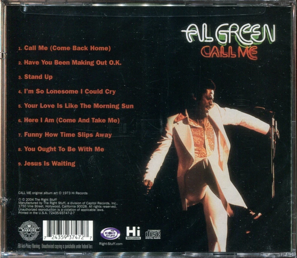 This is AL GREEN CALL ME REMASTERED CD by Right Stuff Records 2004. The CD is BRAND NEW (NEVER OPENED) and is NOT A PROMO, CUT-OUT or COPY. It is an original bought from the store (CHECK OUT THE SCAN!!!!!). I am getting rid of thousands of CD’s that I collected over the years and most of them were NEVER Opened from their original packing….. Domestic and JAPANESE IMPORT releases!! CALL ME (COME BACK HOME) HAVE YOU BEEN MAKING OUT O.K. STAND UP IM SO LONESOME I COULD CRY YOUR LOVE IS LIKE THE MORNING SUN HERE I AM (COME AND TAKE ME) FUNNY HOW TIME SLIPS AWAY YOU OUGHT TO BE WITH ME JESUS IS WAITING PLEASE NOTE : I CAN NO LONGER SHIP INTERNATIONALLY, DUE TO CUSTOMS LOSING ITEMS!! U.S. BUYERS ONLY!! The CD's are generally rated the condition in one of the following categories : MINT NEAR MINT EXCELLENT GOOD\FAIR POOR Please note that the rating that each CD receives is my opinion and that could differ from yours. If you need further descriptions on a specific CD please email me as THEY ALL ARE SOLD AS IS. Check out ALL my other rare CD’S and CD BOX SETS, DVD and MORE!! PLEASE DO NOT HESITATE TO EMAIL ME WITH ANY QUESTIONS CONCERNING ANY PURCHASE OR BID Shipping Multiple wins receive combined shipping Double CD's and Boxsets vary in weight, please email me for rates Payment YOU MUST HAVE YOUR PAYMENT TO ME WITHIN 3 DAYS!!!!! NO EXCEPTIONS!! HAPPY BIDDING!!!!