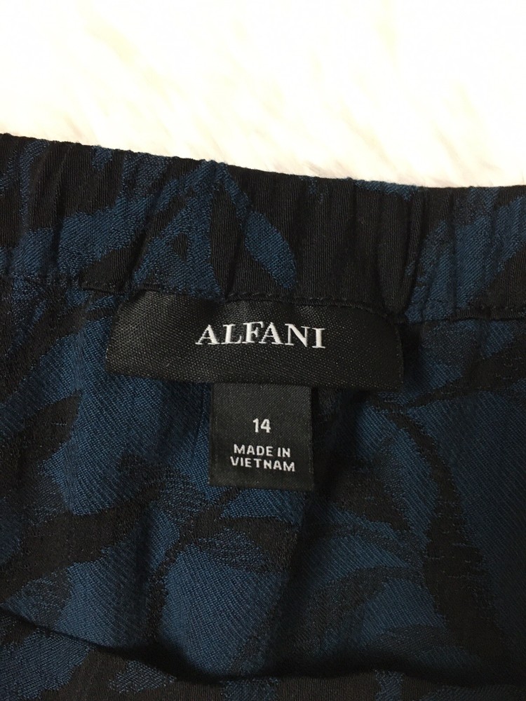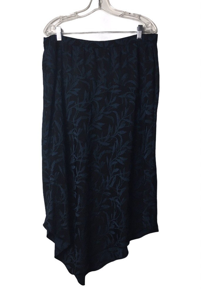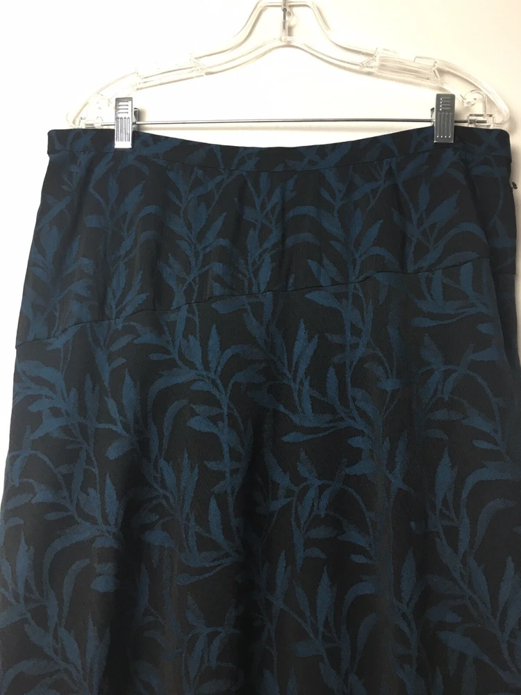 ALFANI Women's Leafy Vines Asymmetrical Midi Skirt Blue & Black Size 14 NWOT see pictures for more details and measurements