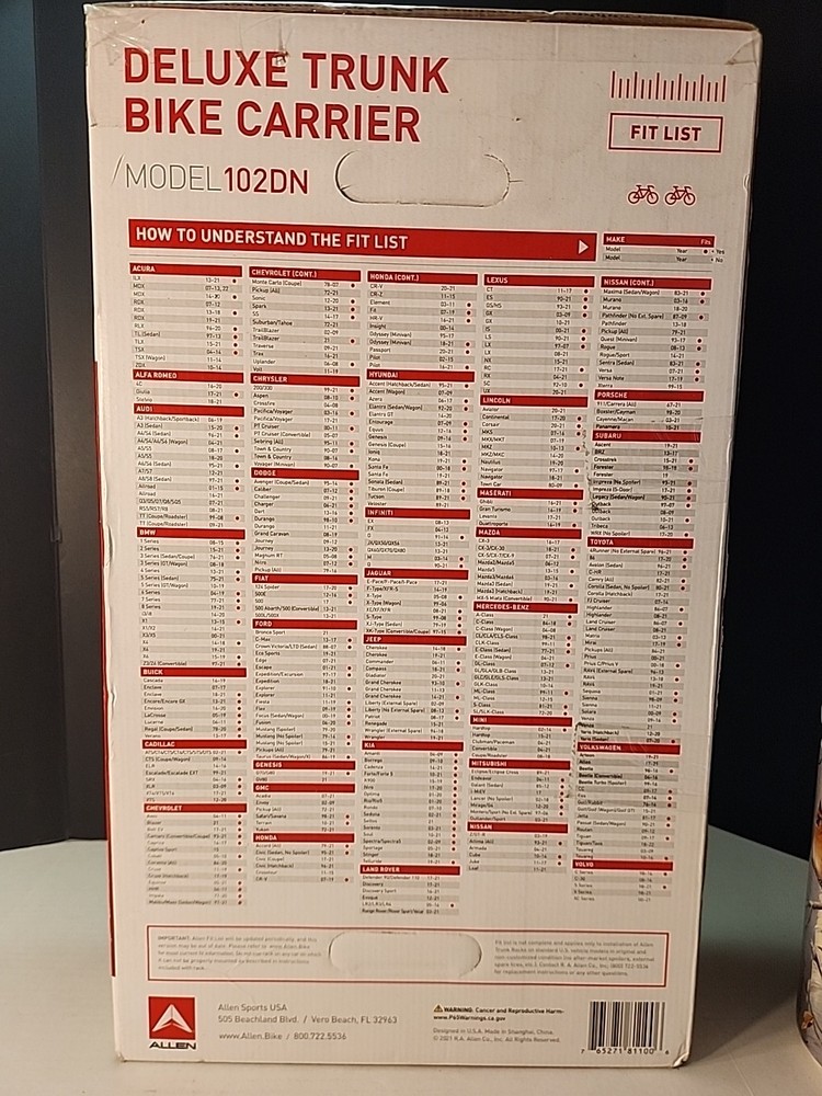 The ALLEN Sports Deluxe 2-Bicycle Car SUV Trunk Mounted Bike Rack Carrier is a sturdy and reliable option for transporting your bikes securely. With a capacity for 2 bikes and protective padding for added security, this black rack is designed for ease of use and long-lasting durability. Backed by a lifetime manufacturer warranty, this trunk mount bike rack is a trusted choice for cyclists looking to safely transport their bikes on the go.