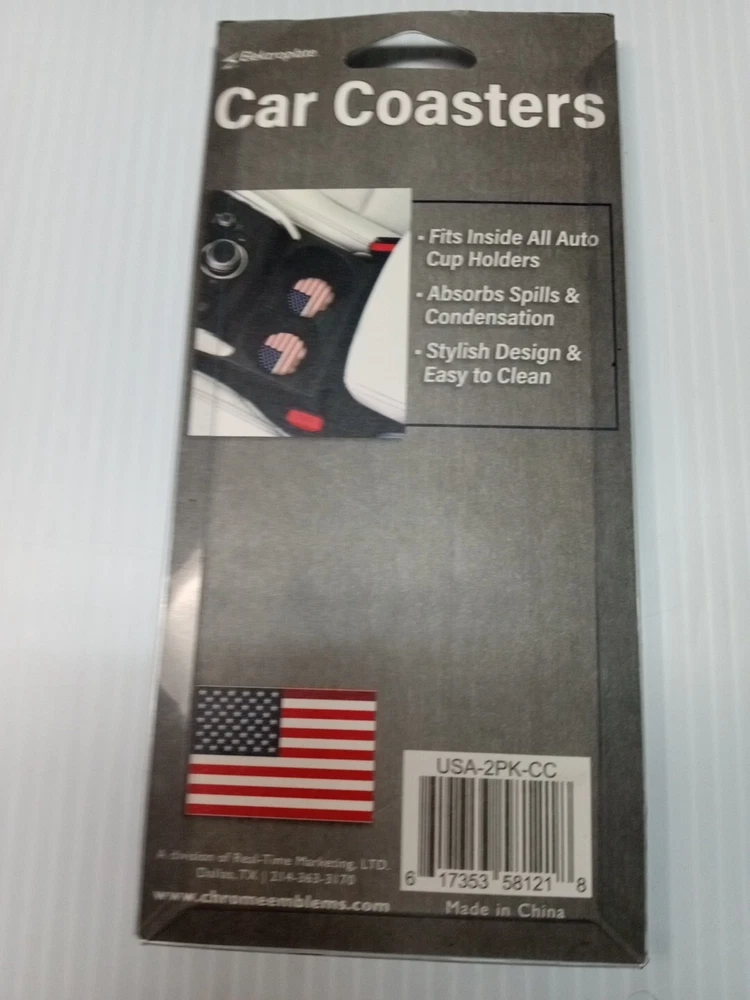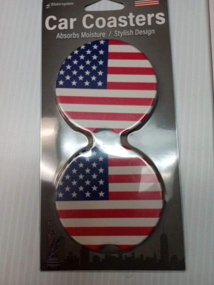 AMERICAN FLAG CUSTOM CERAMIC SANDSTONE CAR COASTER SET 2 FOR CUP HOLDER
