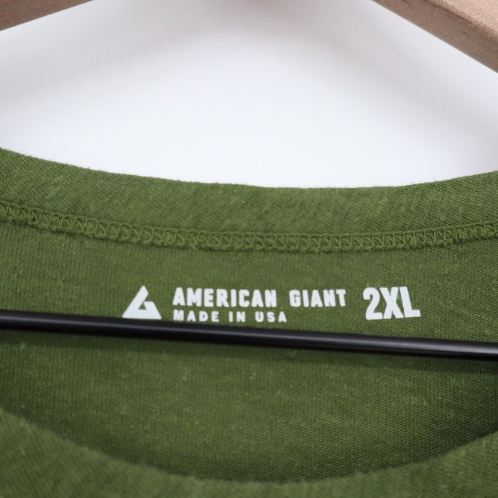 An American Giant men's short sleeve crew neck t-shirt in green. This versatile tee crafted from a blend of organic cotton and hemp offers exceptional comfort and durability. Perfect for everyday wear, outdoor adventures, or layering under a jacket. Measurements: • Chest: 23 in • Length: 30 in • Size: 2XL Department: Men Fit: Relaxed Sleeve Length: Short Sleeve Pattern: Solid Type: T-Shirt Features: Breathable, Lightweight, Stretch Neckline: Crew Neck Fabric Type: Jersey Material: Hemp, Cotton Accents: Logo Season: Spring, Summer, Fall Model: Sportsman Garment Care: Machine Washable Country of Origin: United States Keywords: American Giant, mens tee, green shirt, crew neck, short sleeve, organic cotton, hemp blend, made in usa, basic tee, casual wear, everyday essential, comfortable, durable All orders are shipped the same business day or the next business day. Thank you for supporting my small business.