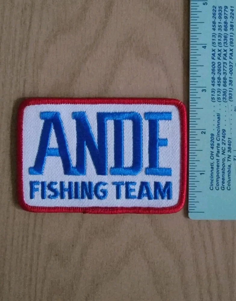 This ANDE Fishing Team Patch is a must-have for any fishing enthusiast. The patch features a white color design on 100% cotton material, with a size of 2-3/4" x 4". It is a vintage item from the 1980s, perfect for adding a touch of nostalgia to your fishing outfit. The patch is from the ANDE brand and is a part of the Unisex Adults department. It is perfect for any fishing-themed activity or outfit. The patch is also lined, ensuring that it stays in place comfortably. Made in the United States, this patch is a great addition to any fishing lover's collection. Patch will be sent via USPS FIRST CLASS ENVELOPE.