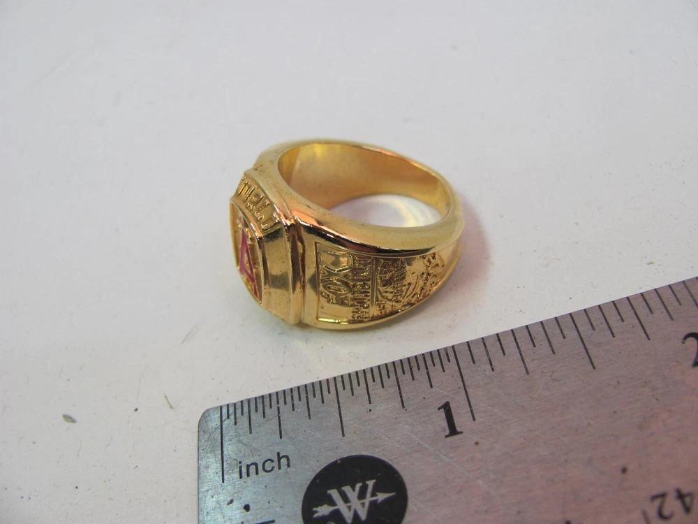 Signed: No Type: Ring Occasion: Wedding, Birthday, Christmas, Anniversary, Christening, Valentine's Day, Graduation, Father's Day, Engagement, Confirmation/Communion UPC: Does not apply Seller Notes: “GOOD CONDITION. MINIMAL WEAR AS SHOWN” Shape: Band Antique: No Ring Size: 9 gtin13: Does not apply Vintage: No Color: Gold, Red Theme: Sports, Baseball, World Series Championship Metal: Gold Plated Seller Warranty: No Brand: Unsigned Designer