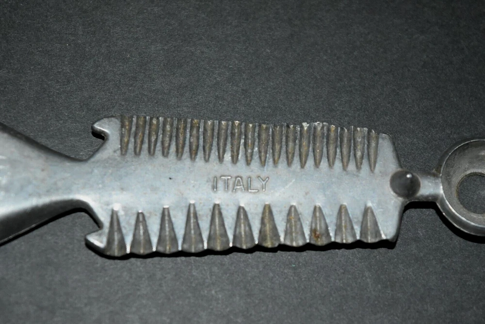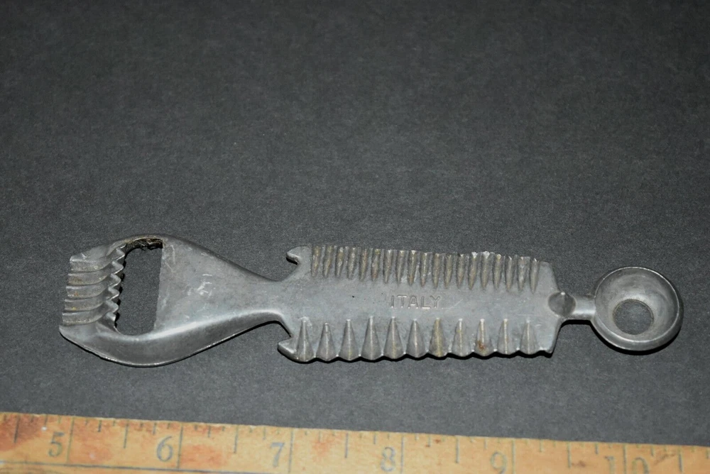 you are bidding on an original - RARE - METAL - BOTTLE OPENER - FILE(?) - Made in Italy - Very Unique -Unusual piece! has wear - it's very old. see photos for condition any questions - eBay - shipping -USPS- 7.00 - INSURANCE - DELIVERY CONFIRAMTION -