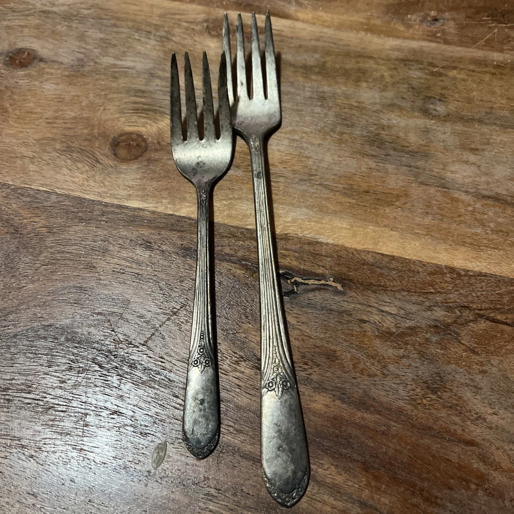 Crafted with the elegance of yesteryear, this vintage collectible fork set from WM Rogers Mfg Co is a testament to classic tableware. The set includes a 7.25" grande forks and a 6" companion piece, both fashioned from high-quality silverplate. With their roots in the first half of the 20th century, between 1900 and 1940, these forks carry with them a historical charm that is sure to grace any collection or dining experience. The forks feature the intricate craftsmanship characteristic of the period, and while unbranded, their design and quality speak to the renowned standards of WM Rogers. Whether used for special occasions or displayed as part of a silver legacy, these silverplate forks are a beautiful addition to any assortment of antique silverware.