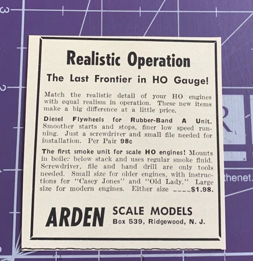 ARDEN SCALE MODELS RIDGEWOOD NEW JERSEY 1958 TRAIN PRINT This item was found at auction and there may be some staining, discoloration and other signs of age and use. Please see detailed photos for condition. **Photos are the item being sold.** Click Here to Visit my eBay Store