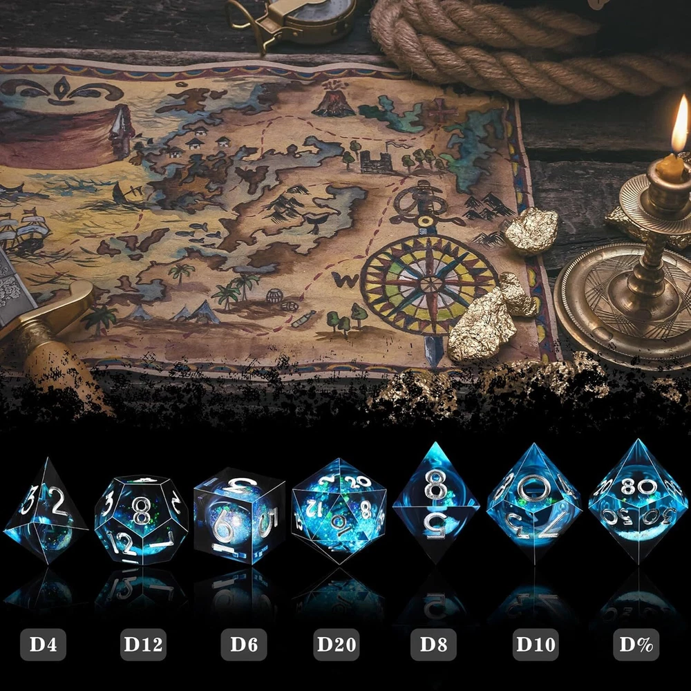 AUSTOR Liquid Core Resin DND Dice Sharp Edge Polyhedral Blue & Black Product Details Package Dimensions: 4.41 x 3.03 x 1.34 inches Item Weight: 3.2 ounces Manufacturer recommended age: 12 years and up Manufacturer: AUSTOR 7-Die DND Dice Set - This is a full set of 7 pcs liquid core resin dnd dice, including D4*1, D6*1, D8*1, D10(0-9)*1, D12*1, D20*1 and D%(00-90)*1, come with a PU foam lined storage box to display and store your polyhedral dice Liquid Core Technology - The resin dnd dice contain liquid core quicksand ball, you can see the effect of quicksand floating when the resin dice rolling, and different angles will display different visual effect Sharp Edge Dice - Each liquid resin dice is meticulously handmade mirror finished and polished, form the sharp corners and delicate edges dnd dice, which luxurious like a gem and eye-catching High Quality Material - AUSTOR liquid core dnd dice set are hand-cast with natural resin, environmentally friendly, non-toxic, sturdy and wear-resistant, with moderate weight and good rolling feel Great Game Dice - The sharp edge liquid core resin dnd dice set are perfect for Dungeons and Dragons, MTG, Shadowrun, Pathfinder, Yahtzee, math games, and other table games etc.