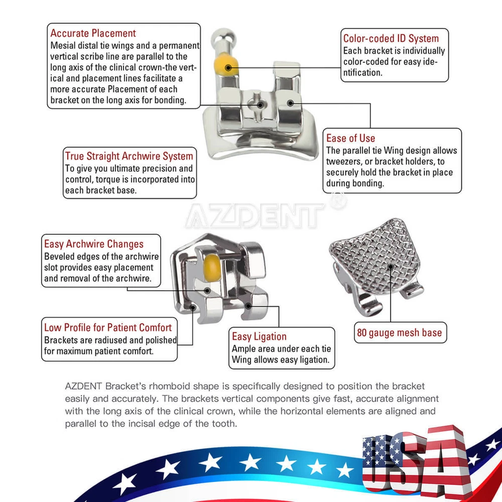 AZDENT Dental Orthodontic Brackets Metal Braces Standard MBT 022 Hooks 3-4-5/3 Features: Dental Orthodontics Brackets Braces (20Pcs/pack) Model : Standard, MBT, Slot 022"Hooks 3-4-5/3 Used for orthodontic dental treatment Material : Metal 20 pcs per Pack Styles and sizes optional : Mini/Standard Roth/Edgewise / MBT 018 Slot/022 Slot No hooks/3 with hooks/3 4 5 with hooks If you need other size, please leave us a message after your order. Thank you! FDA Statement The sale of this item may be subject to regulation by the U.S. Food and Drug Administration and state and local regulatory agencies. If so, you can bid on this item only if you are an authorized purchaser. If the item is subject to FDA regulation, I will verify your status as an authorized purchaser of this item before shipping of the item. Seller name:youlan2014 City State: SHENZHEN,China Telephone number:0755-69985451 Exchanges are offered for items that are defective or damaged when received, although this is highly unlikely. After exchanges are made and have not resolved the issue, we will refund the cost of the merchandise. Defective items or problems with your order must be reported within 3 days after receiving. Please keep all packaging, documentation, packing list,etc. that came with your order. These will be used to verify claims if there is any problem with you. Restocking fee will be charged for returned items without original package or any quality problem.Please contact us for details before returning your package to avoid misunderstanding. IMPORTANT: Customer's item must be returned to our facility with the ROF (Return Order Form) at the buyers shipping expense. The goods you odered will be posted out in the second working day after the paymet has been made. (We will inform you via email if any delay occured due to holiday events. General shipping time is between 7-12 working days. (After the shipping started, the order will be monitored and the track of the item will be posted on paypal. We accept PayPal only. The address in your paypal details will be used as the actual shipping adress, please make sure the adress is correct. If you are planning on combining your items, please make sure that you wait until ALL auctions have ended before you visit the checkout. All items must be paid within 7 days. Serivce is our 1st priority at Baistra! If you contact us immediately after placing the order, we will make every effort to assist you with your change request. Unfortunately, we can not make changes or cancel an order once it has shipped. We offer the best items at the best prices. We strive to exceed all your expectations and put a smile on your face. Your experience will be a pleasant and effortless one when you buy at Baistra. We stand behind our products and pride ourselves on OUTSTANDING customer service. We guarantee that you will be delighted with your purchase or we will gladly and promptly issue you a refund or make things right!