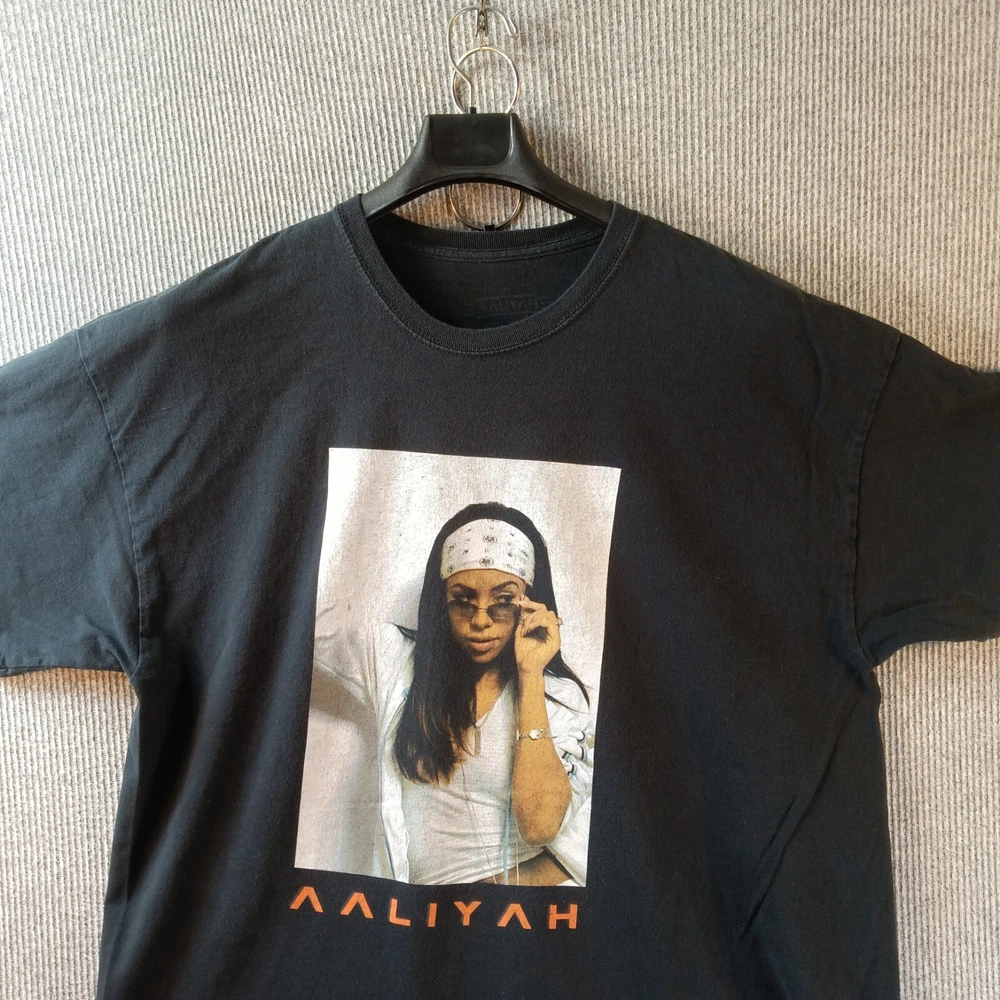 B22-008318 Picked-4-You: Aaliah Shirt Black R &B Singer R & B Music Tilted Shades Short Sleeve Size: Adult XXL Measurements/Condition/Flaws : Please see photos above and/or below for measurements, condition, and flaws. Measurements are approximate and round to the nearest 1/2 Inch. Good used condition Hole left arm Pit Shirt Length: 28 " Pit To Pit: 24 " Sleeve Length: 6.5 " Shipping Details: US orders are shipped via USPS Ground Advantage, USPS Priority Mail, FEDEX, UPS. FLAT RATE ($9.50) unless otherwise indicated. International orders are shipped via the eBay Global Shipping. Items typically ship next business day. Combined Shipping Discount : Buy 2 or more items and each additional item receives reduced shipping discount: Priority Combined items priced at $9.50 shipping reduce to $4.99, USPS Ground Advantage Combined items priced at $6.67 shipping reduce to $2.99 (Automatically applied at checkout when you pay the " Buy It Now " price or if specifically negotiated and invoiced.) Shirt measurements are pit to pit, collar neck inseam to bottom of shirt and shoulder inseam to bottom of cuff. Pant Measurements are waist side to side waist, rise, inseam and leg opening/cuff. Unless otherwise indicated. Feel free to ask any questions or make an offer, we'll respond without delay. Additional Details: 60 day FREE returns unless otherwise indicated. NO returns on international orders. Measurements are approximate, measure and check against items at home to estimate fit. All items cleaned per eBay standards and stored in a smoke-free environment. PURCHASE WITH CONFIDENCE!!! All items PICKED-4-YOU with love and with you in mind. If you are not completely satisfied with this purchase, you can return it for a refund within 60 days of receipt. Details can be viewed under " Shipping: See details " within the listing. There may be circumstances that warrant an adjustment to the refund amount including the ORIGINAL shipping cost. Details can be viewed under " Shipping: See details " within the listing. Thanks again for stopping by. Please leave your feedback and add us to your list of favorite stores. B22-008318