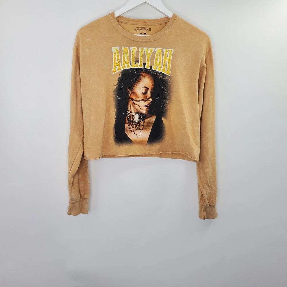 Aaliyah Big Graphic Band Tee Long Sleeves Cropped Tan Orange M. Size Medium Excellent pre-loved condition. Measurements 34" Chest, 18.75" Length Fast shipping! No pet & smoke free home!
