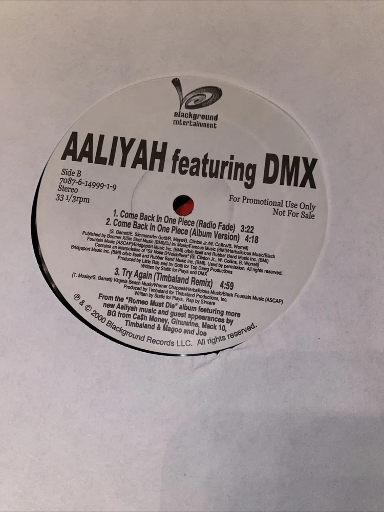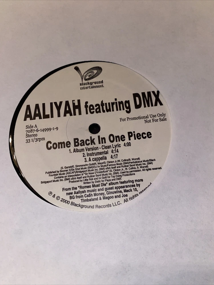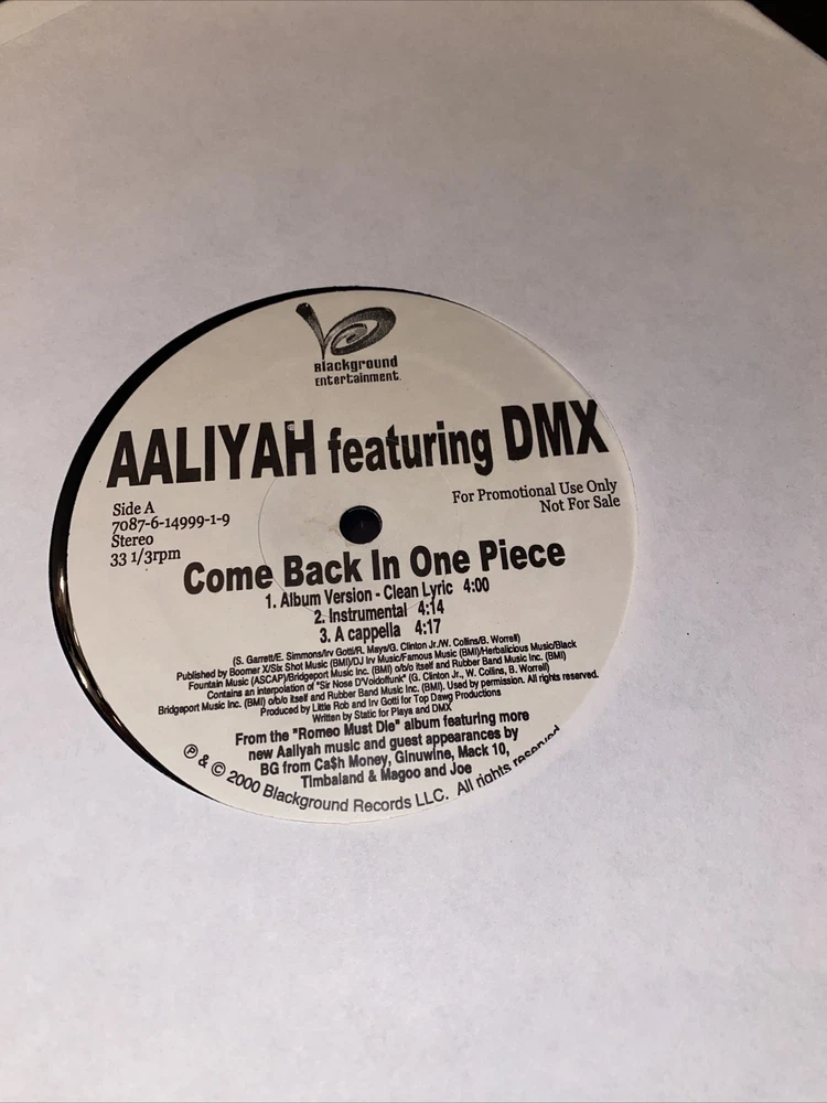 Format:RecordArtist:Aaliyah featuring DMXRecord Size:12"Type:Triple LPRelease Year:2000Release Title:Come Back In One PieceRecord Label:BlackgroundSpeed:33 RPMInstrument:RecorderEra:2000sEdition:Promo