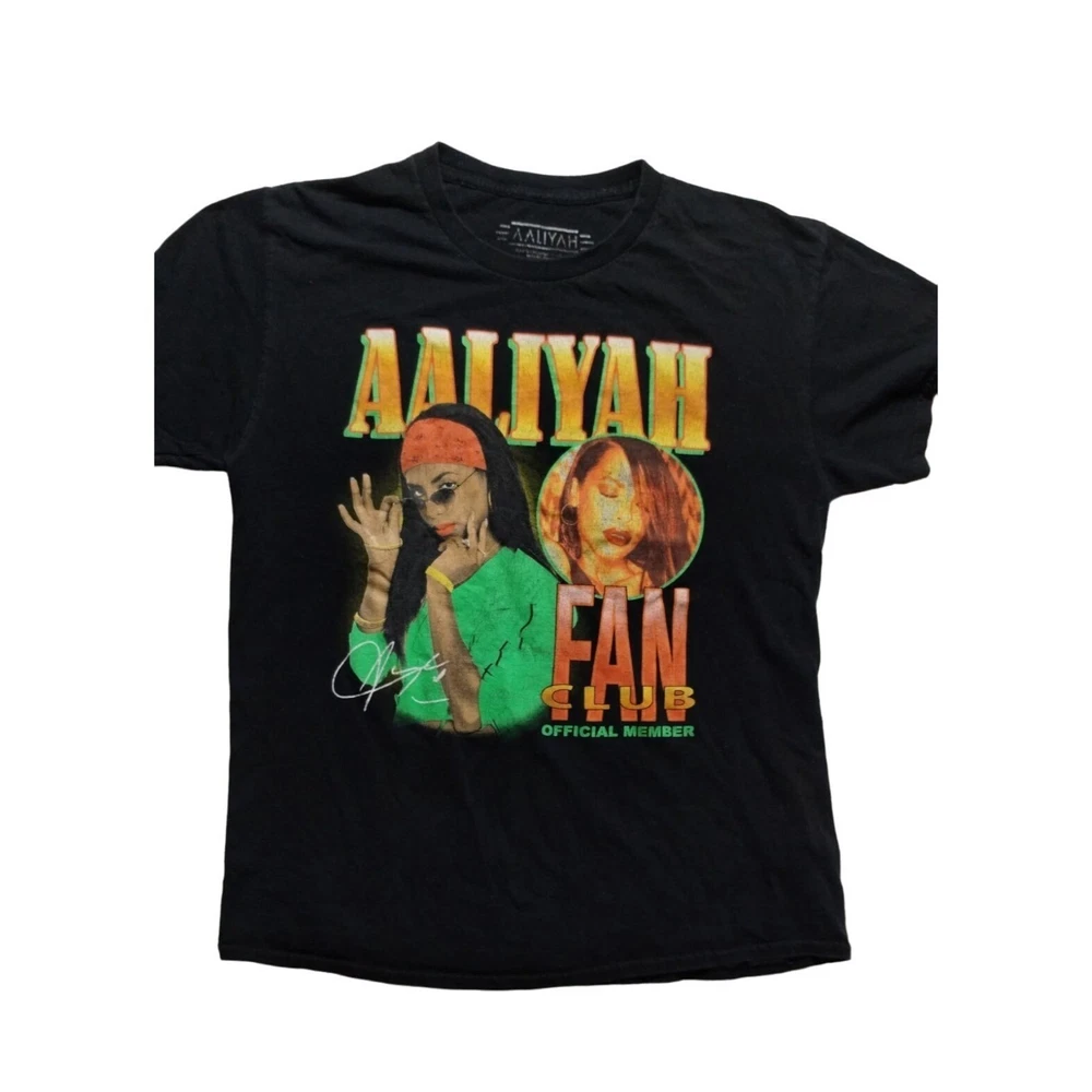 Celebrate your love for Aaliyah with this stylish fan club T-shirt. Made from 100% cotton, it offers comfort and a statement look. • Aaliyah fan club design • 100% cotton material • Black color • Official member print • Size L • Machine washable Top to bottom = 24 inches Features: • Aaliyah Fan Club Size: Unisex L Condition: Pre-Owned Good In Very Good Condition No Tears, No Rips No Stains