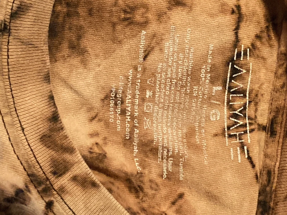 Aaliyah Hip Hop Artist Brown Tye-Dye Tee T-Shirt Size L/G. Shirt has a small hole, as shown in picture, otherwise very nice. Photos of actual item.