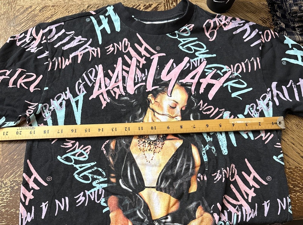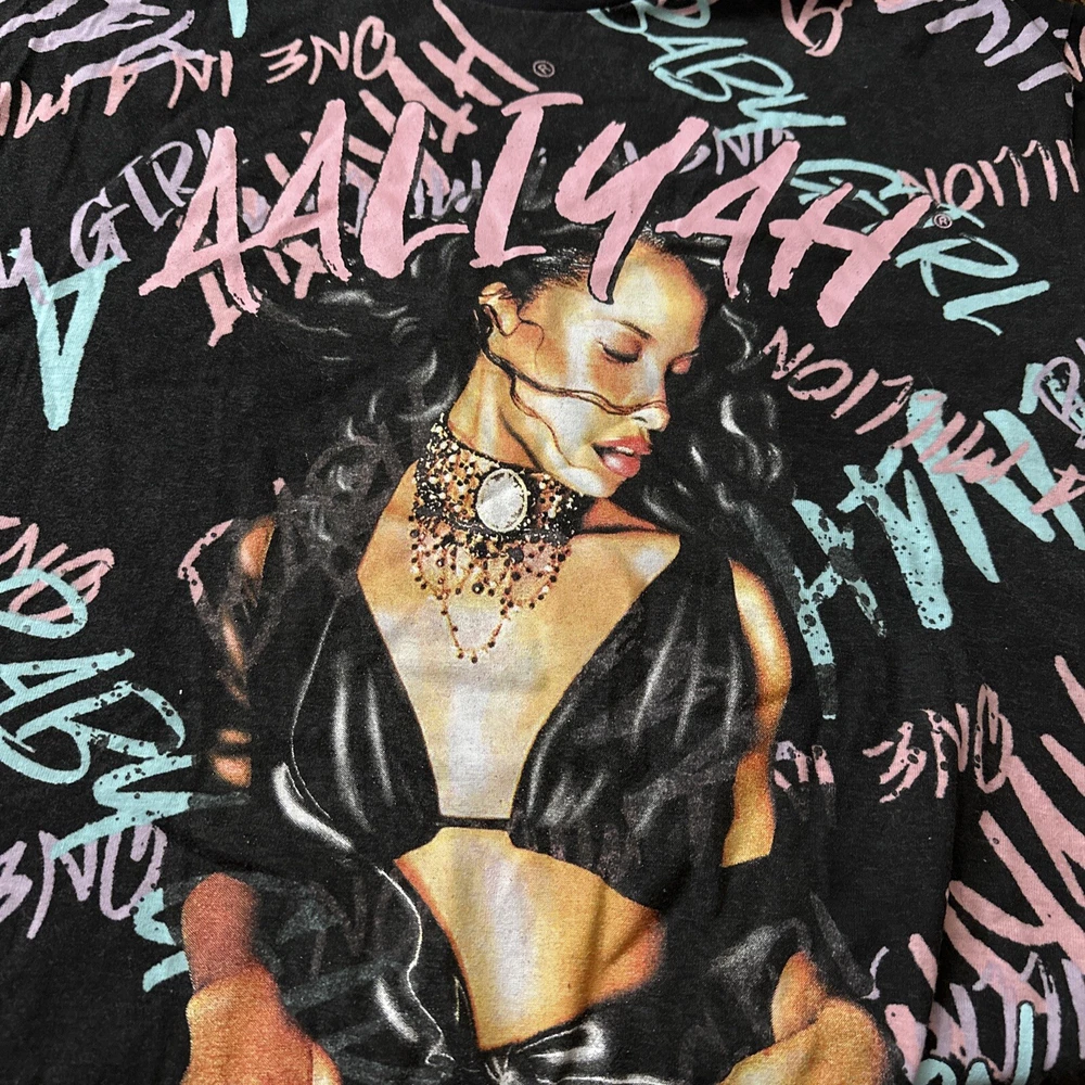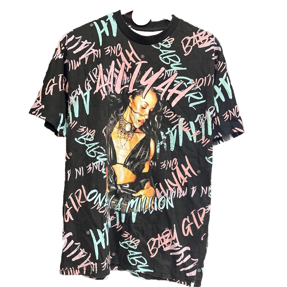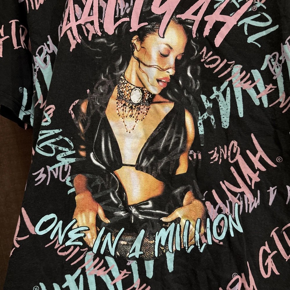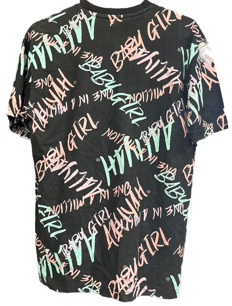 Show off your love for Aaliyah and 90s R&B with this Queen Of The R&B T-Shirt. This unisex tee features a colorful camouflage pattern and the iconic Aaliyah logo in the center. With short sleeves and a round neckline, this shirt is perfect for any casual occasion. Available in size L and with a regular fit, this t-shirt is a must-have for any Aaliyah fan. Made in Pakistan