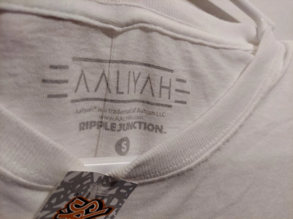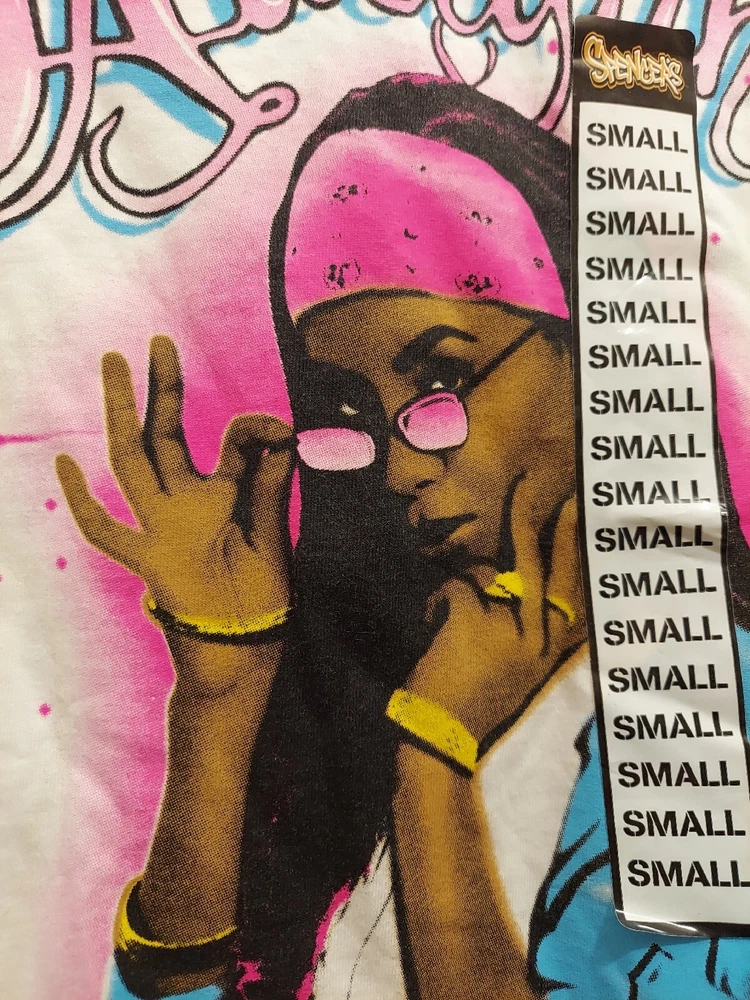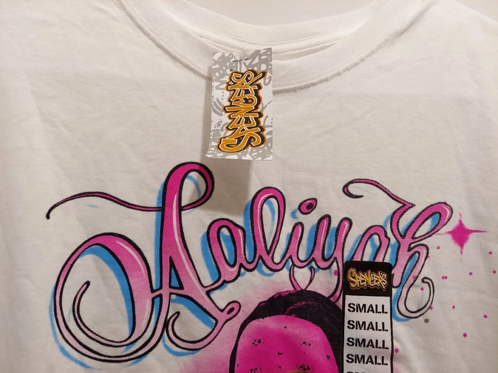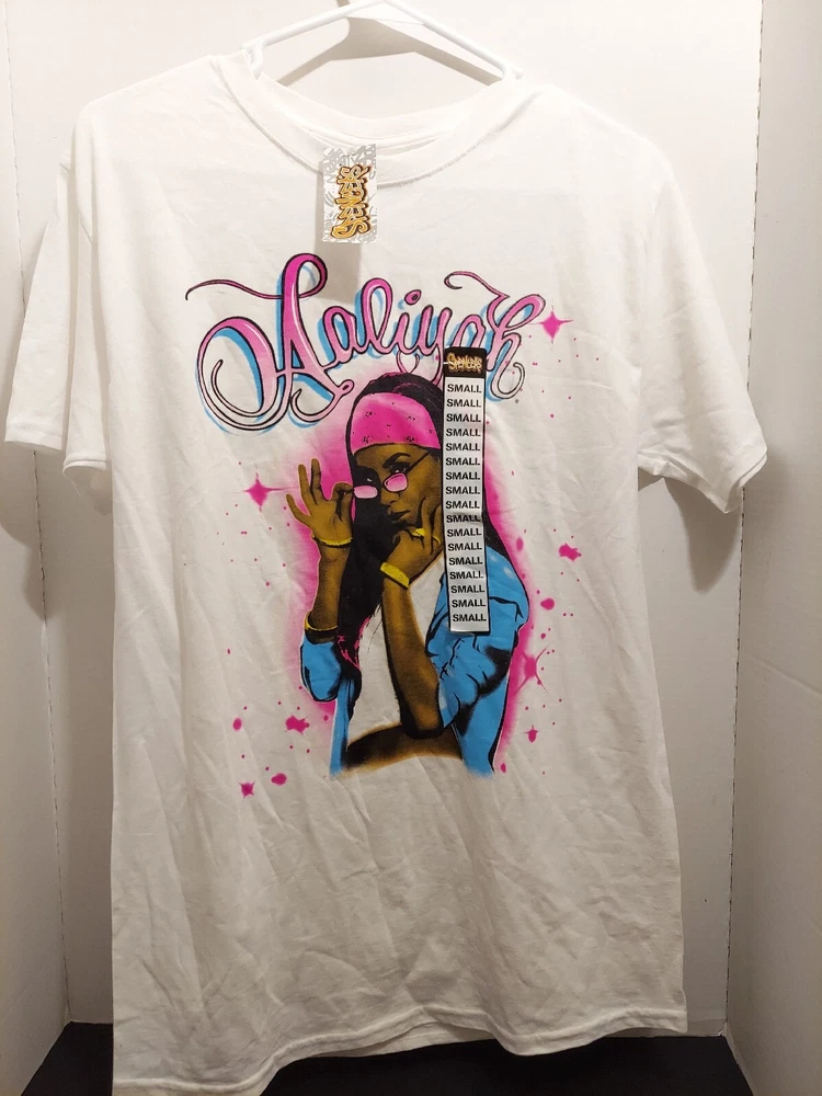 Aaliyah Spray On Style Mens White Pink Blue Shirt Size Small R&b Princess Beach