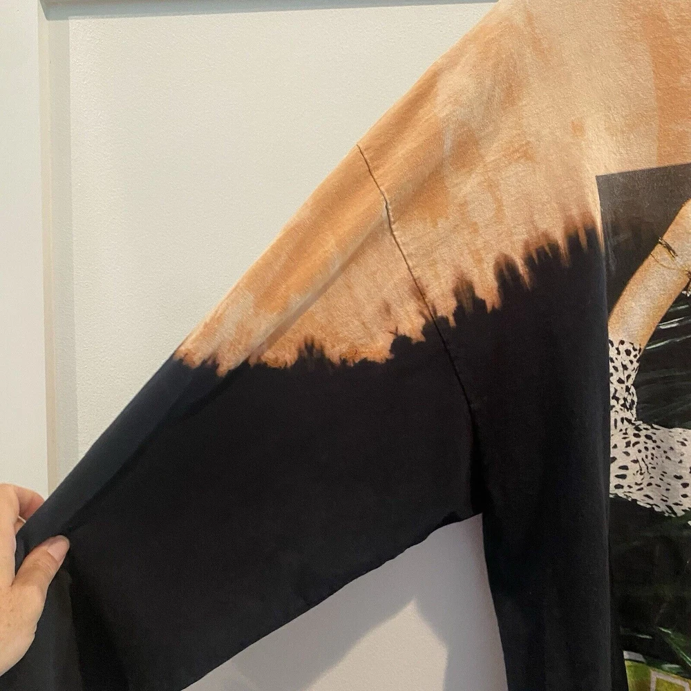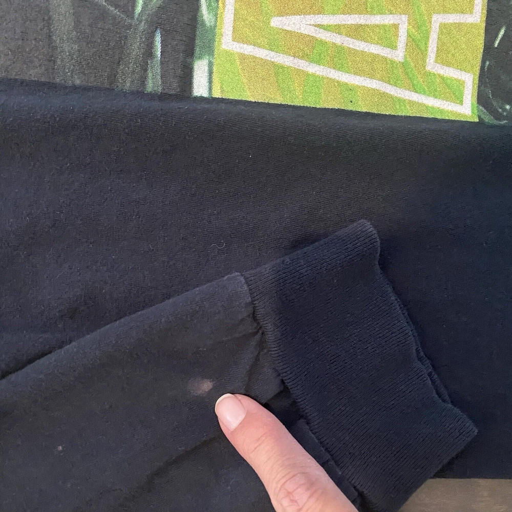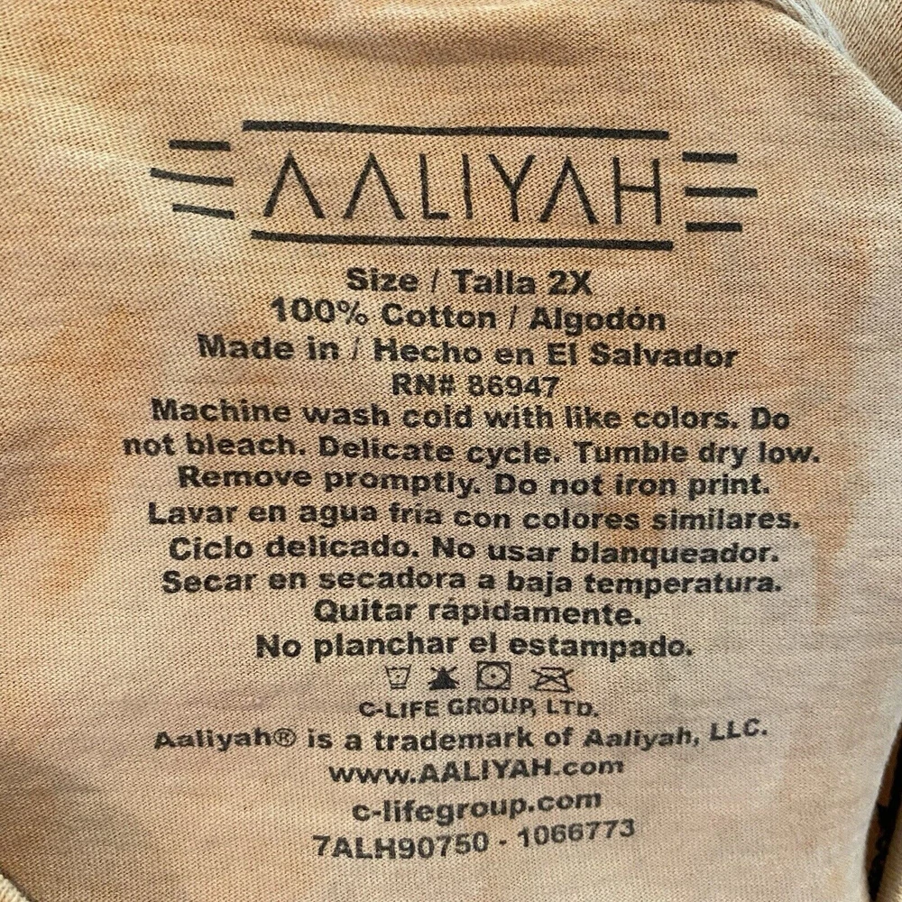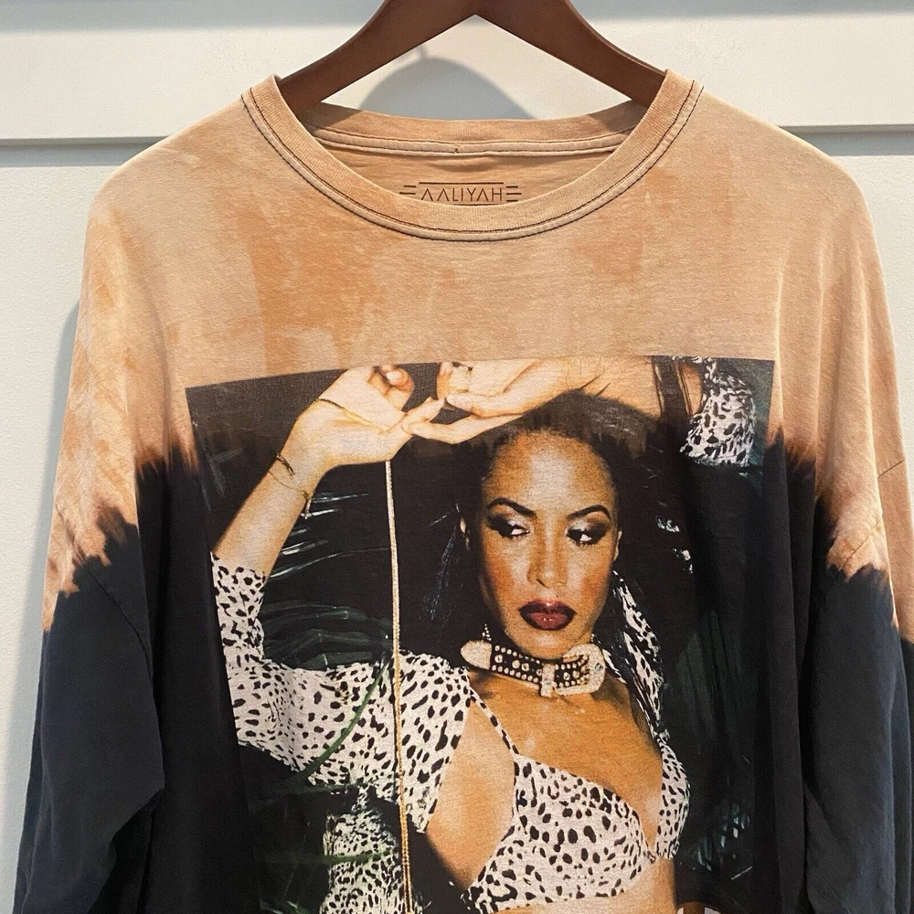 One small bleach stain on lower right sleeve (pictured)—in otherwise good preowned condition Ships next day, experienced seller. Offers welcome. This Aaliyah T-Shirt is a must-have for any fan of 90s hip hop and music in general. The colorful graphic print features the late artist's name and tour dates, making it a great addition to any collection. The long sleeve crew neck tee is made of comfortable cotton material and is machine washable for easy care. It comes in a size 2XL, making it a great unisex fit for adults. The regular fit style is perfect for casual wear and shows off your love for Aaliyah and hip hop.