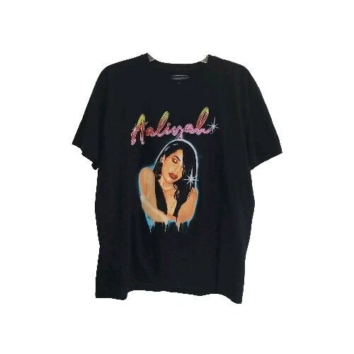 Aaliyah T-shirt XL Black Graphic Short Sleeve Hip Hop R&B 90s Retro
