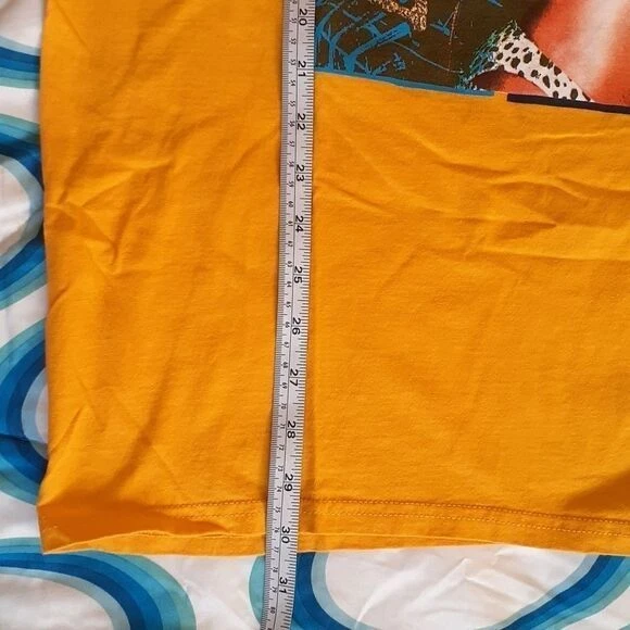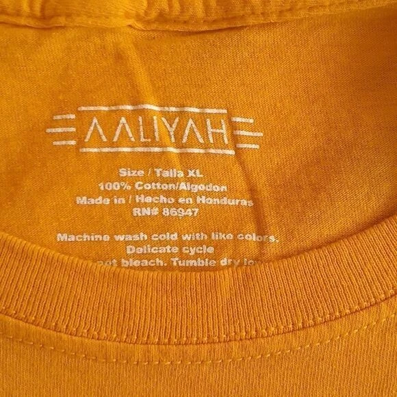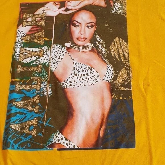 Make a bold statement with this vibrant yellow cotton t-shirt featuring an iconic vintage-style print. Perfect for music lovers and fashion enthusiasts who appreciate 90s R&B culture. This eye-catching piece works great for casual outings, concerts, or styled with high-waist jeans for a retro-inspired look. The rich golden color adds a unique pop to any wardrobe. Keywords: Aaliyah, vintage style, music merch, 90s fashion, retro tshirt, yellow tee, cotton shirt, graphic print, streetwear, urban fashion, music memorabilia, concert tee