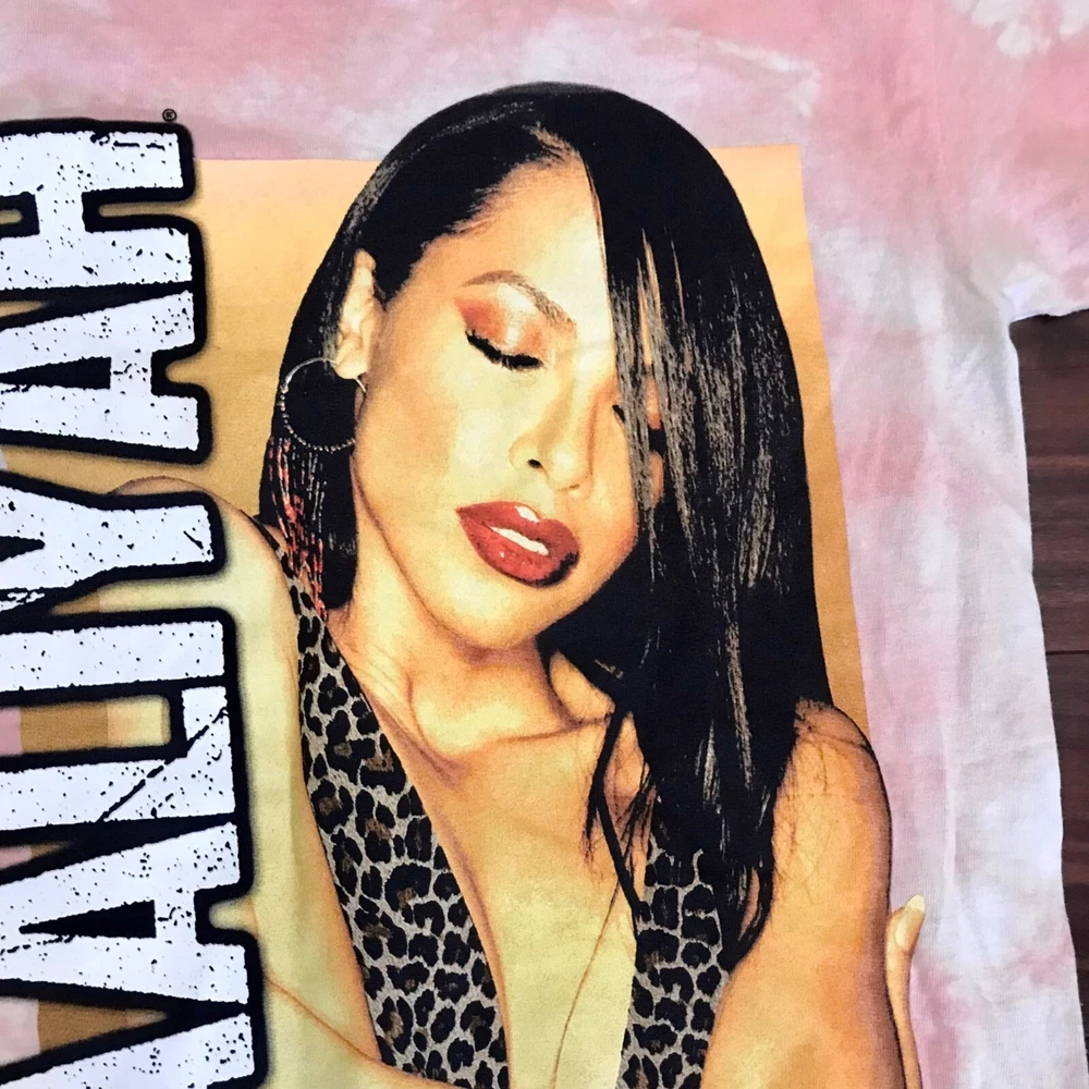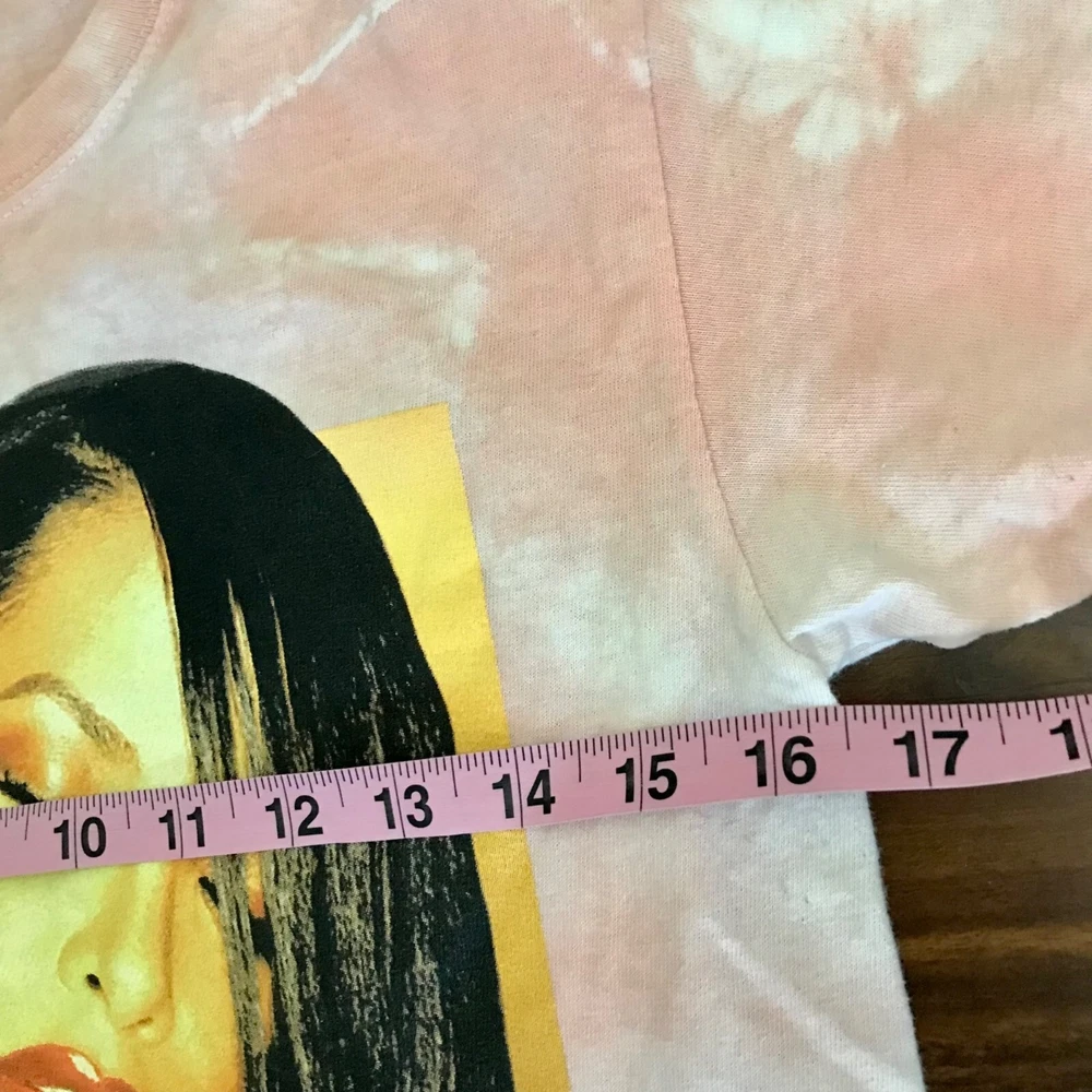 Embrace nostalgia with this Aaliyah women's pink tie-dye graphic band T-shirt, perfect for fans of '90s and Y2K fashion. Comfortable short sleeves and a vibrant design make it a standout piece in any wardrobe. • Pink tie-dye design • Graphic band T-shirt • Short sleeves • 90s and Y2K style • Medium size Size: Womens M approximate measurements laying flat Pit-to-pit 16 in / 41 cm Length 28 in / 71 cm Condition: Pre-Owned Good In great condition. No visible flaws. Smoke-free/Pet-friendly home I usually ship Monday, Wednesday, and Friday Mornings. Bundle for the best deal!