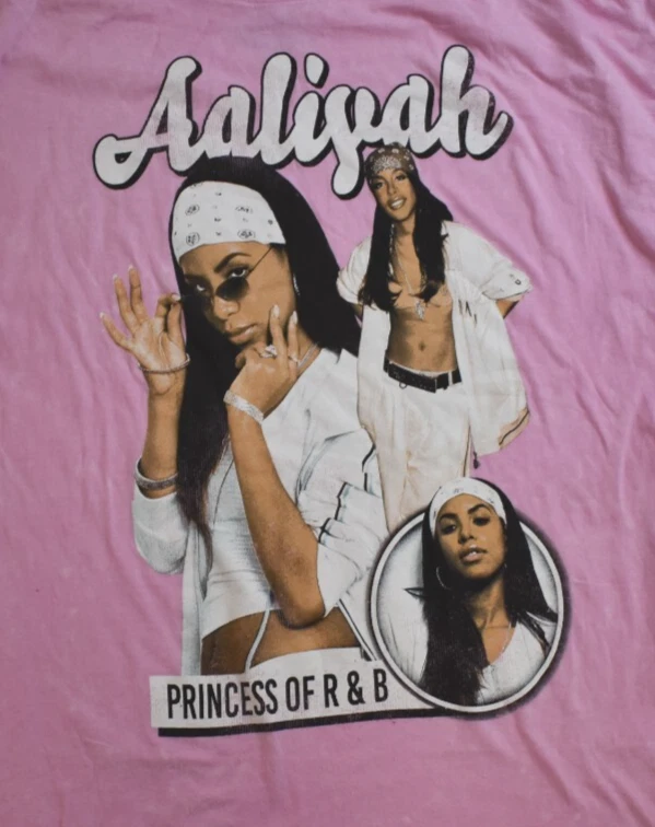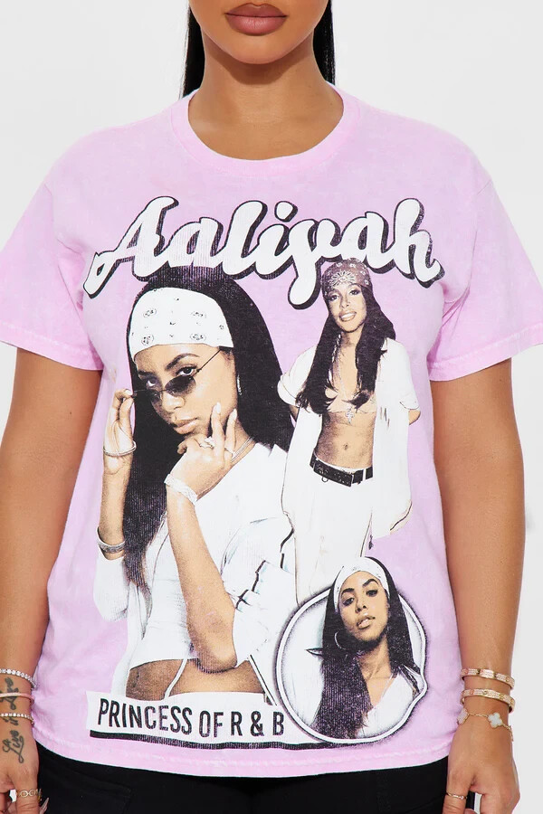 Introducing the Aaliyah Women's Princess Of R&B Pink Wash Shirt in big women's sizes Made from 100% cotton, this Plus-size T-shirt features a round neckline, perfect for women looking for comfort and style. The vibrant pink color adds a trendy touch to any outfit, making it a must-have for fans of the legendary singer. With the iconic Aaliyah brand name, this shirt is a statement piece that celebrating both fashion and music history.