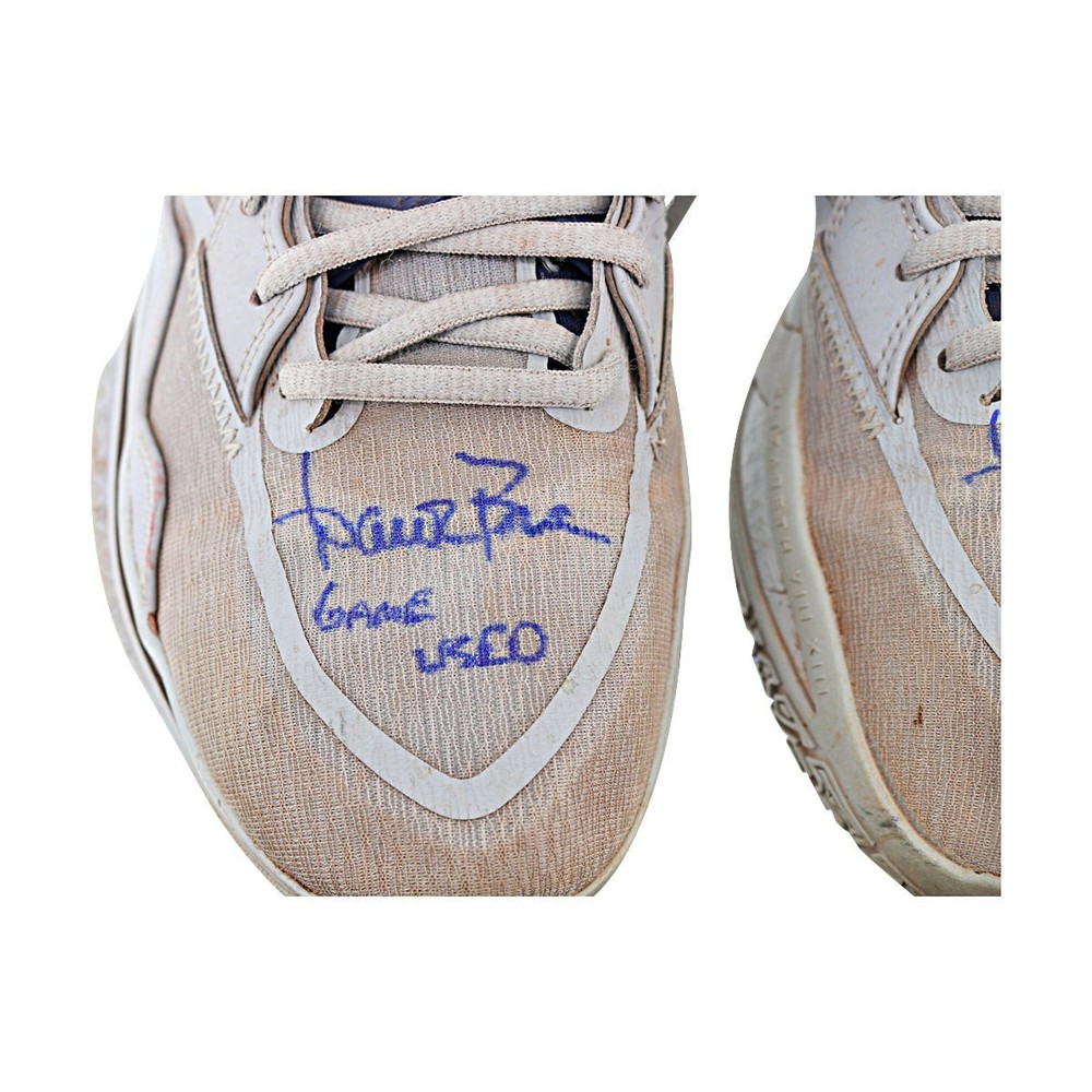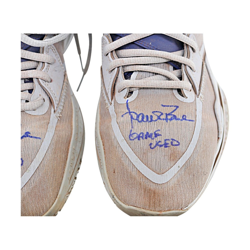 These sneakers are a must-have for any Yankees fan or collector! Game-used and autographed by Aaron Boone himself, they come with a solid LOA and a QR-coded hologram for easy verification. The size 11 Kyrie sneakers look amazing in grey and navy, and the added authenticity features make this a legit piece of memorabilia. Perfect for display or as a unique gift—definitely a home run!