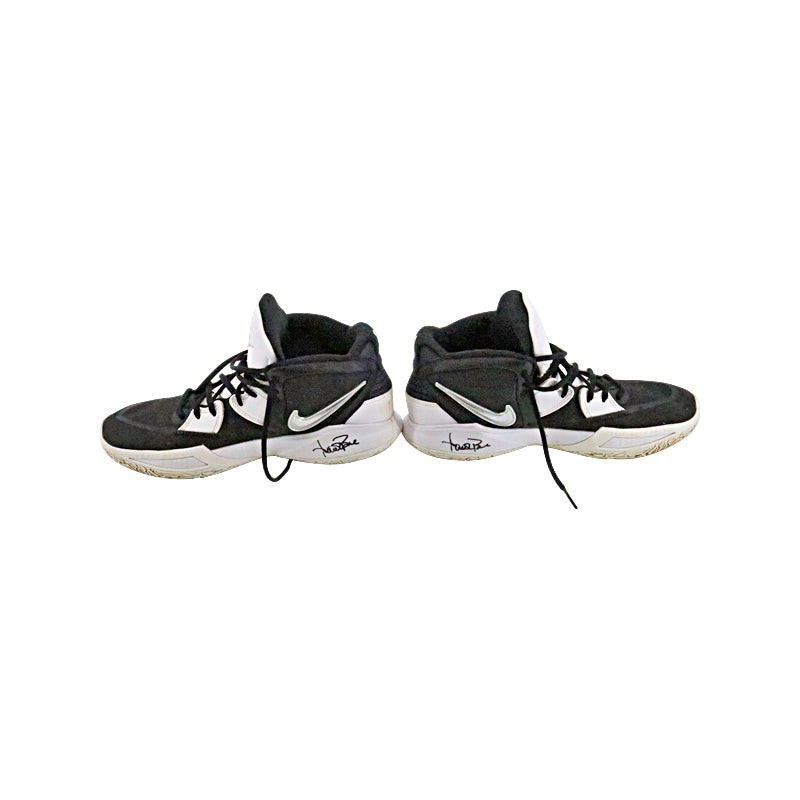 Aaron Boone New York Yankees Autographed Signed 2024 Game Used 'Savages' Model Black/White Nike Kyrie High Top Sneakers - Sz 11 (Aaron Boone LOA) Accompanied by an Aaron Boone CollectibleXchange Letter Of Authenticity