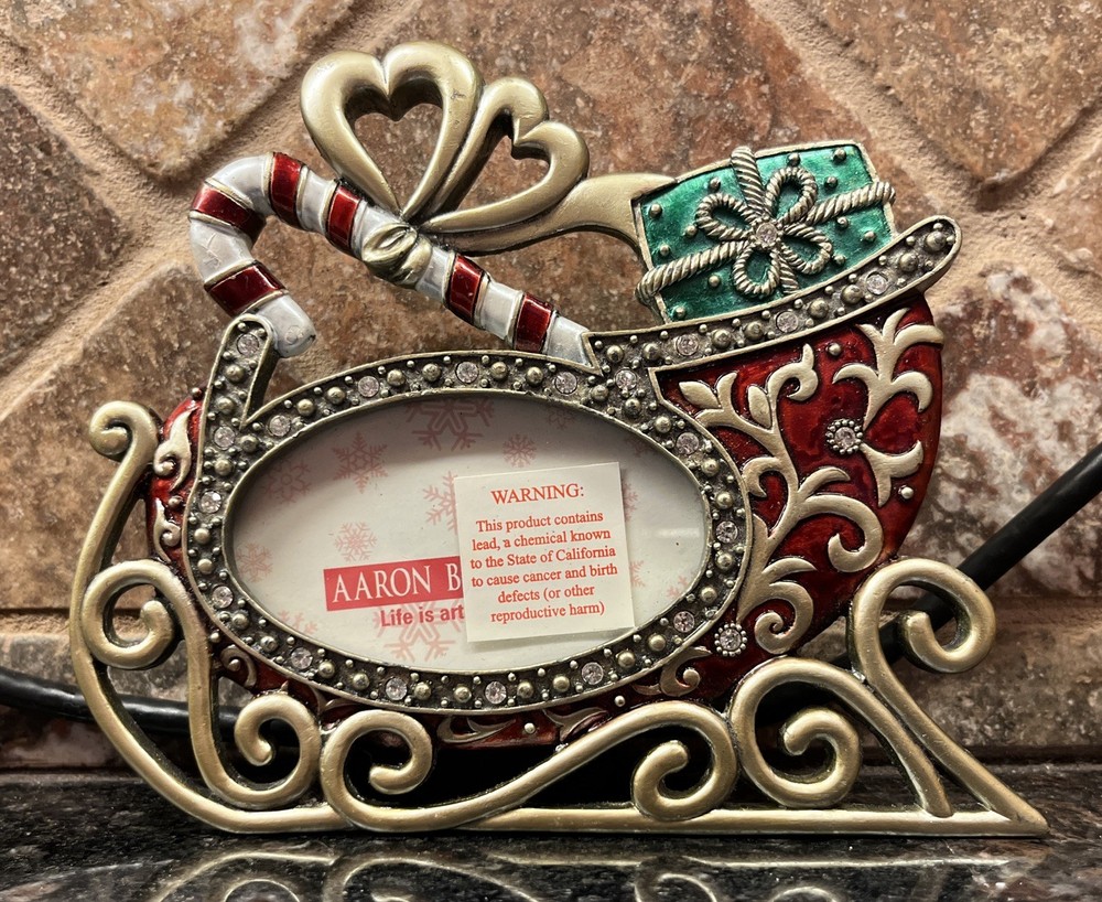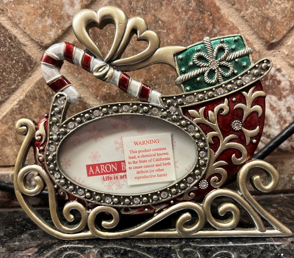 The Aaron Brothers Sleigh Picture Frame Ornament is a festive and charming addition to your holiday decor. This metal frame in a classic Christmas red color features a sleigh shape, perfect for showcasing a 1.75”x1.25” photo. The free-standing design allows you to easily display this photo frame ornament throughout your home during the festive season. Add a touch of holiday cheer to your decor with this stylish and functional item from Aaron Brothers. No box