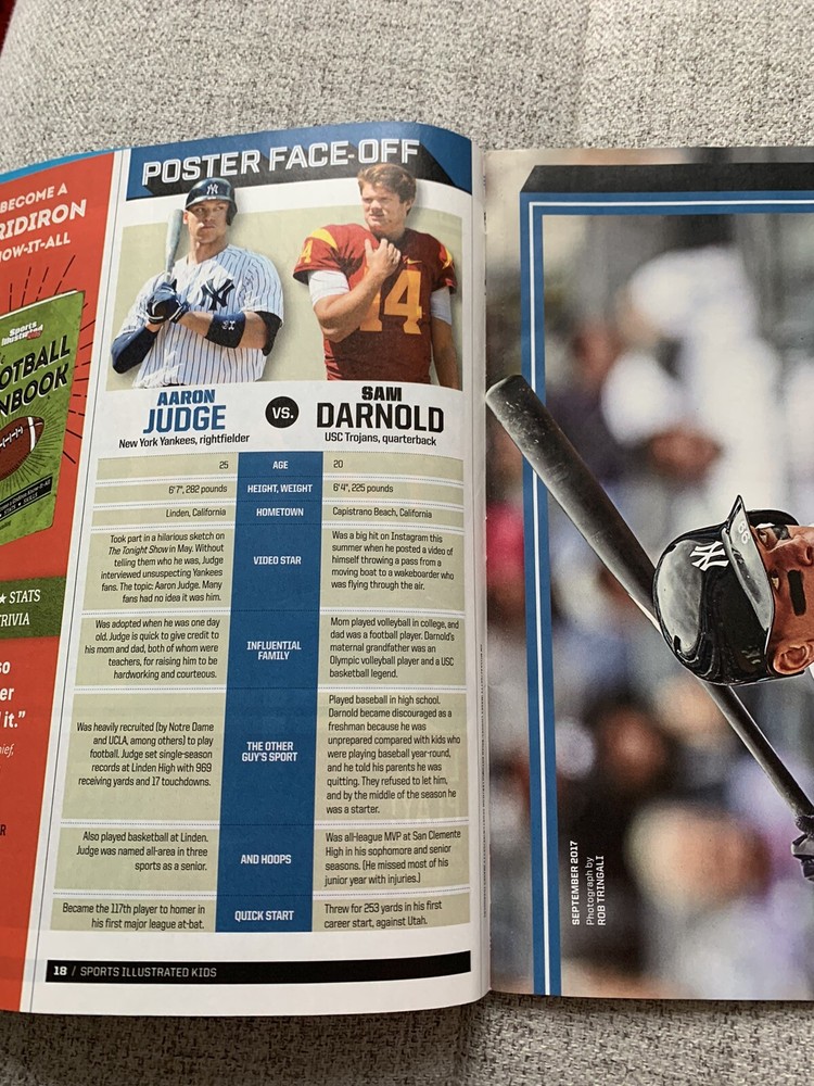 AARON JUDGE ROOKIE POSTER RARE 2017 SI FOR KIDS NY YANKEES SAM DARNOLD RC POSTER.