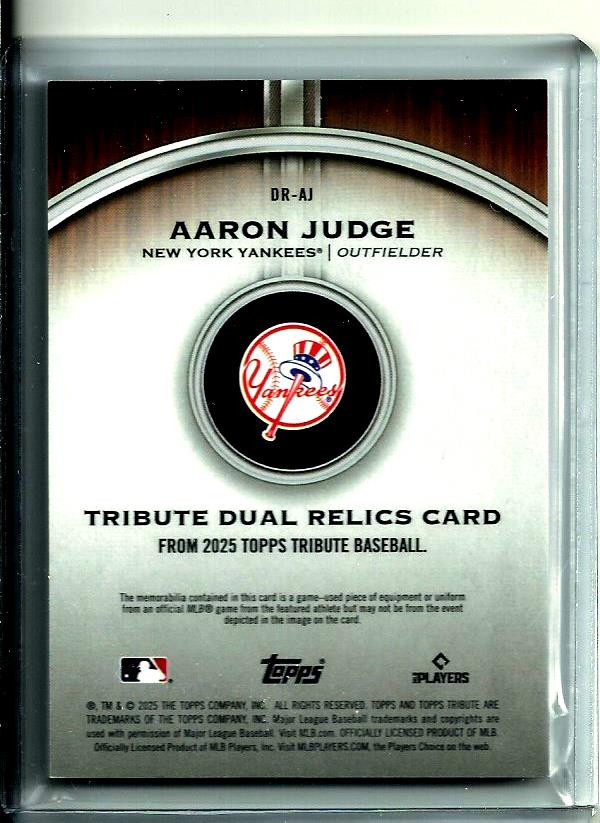 Aaron Judge 2025 Topps Tribute Dual Relics Purple # d 46/50 # DRAJ Yankees