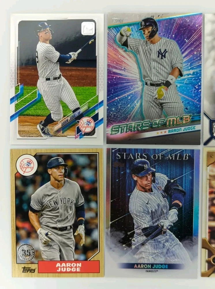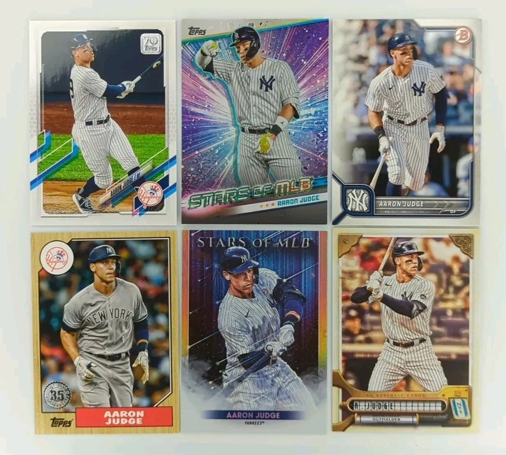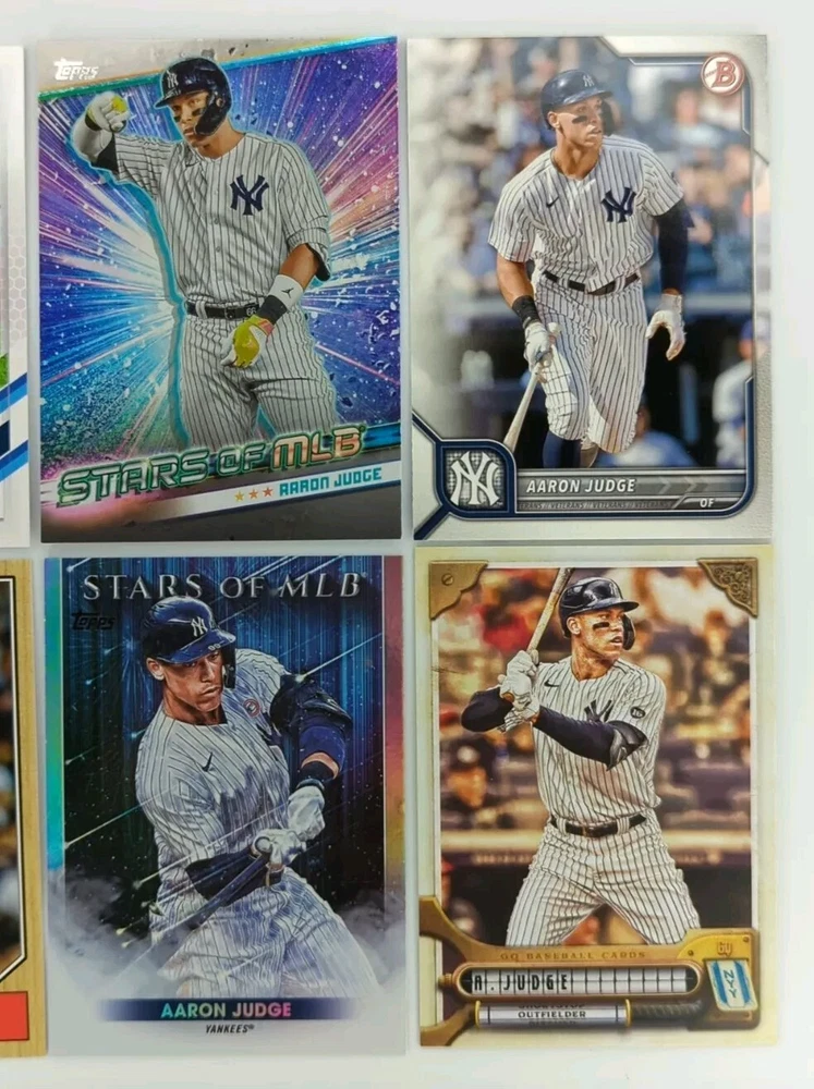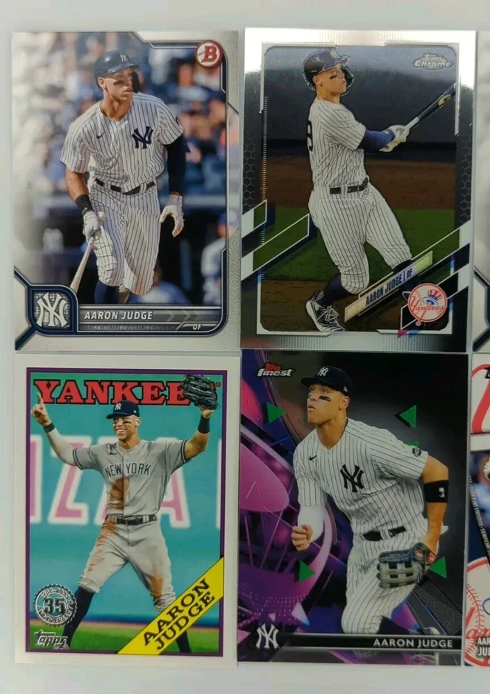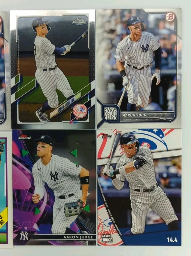This lot of 12 Aaron Judge Topps trading cards is a must-have for any New York Yankees fan. Featuring the iconic player in a variety of poses and designs, this set includes cards from the 2022 Topps base set, as well as several rare inserts and Chrome cards. Each card is made of high-quality card stock and is an original, licensed print. With cards numbered 1-12, this set is perfect for collectors looking to complete their Aaron Judge collection or add to their existing set. Whether you're a seasoned collector or just starting out, this lot is a great addition to any sports trading card collection. Don't miss your chance to own these unique and highly sought-after cards!