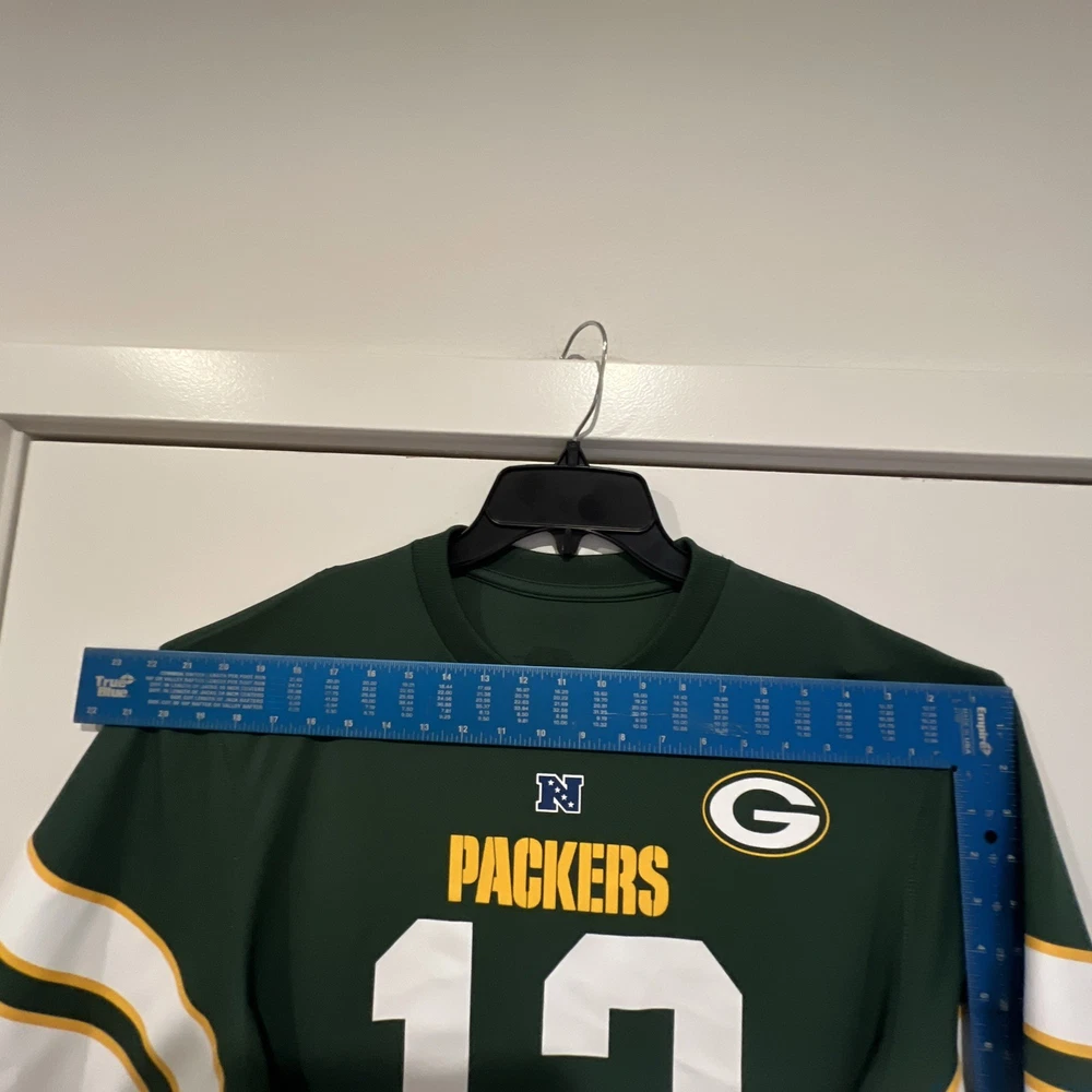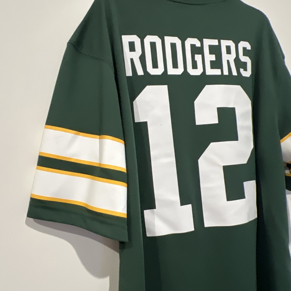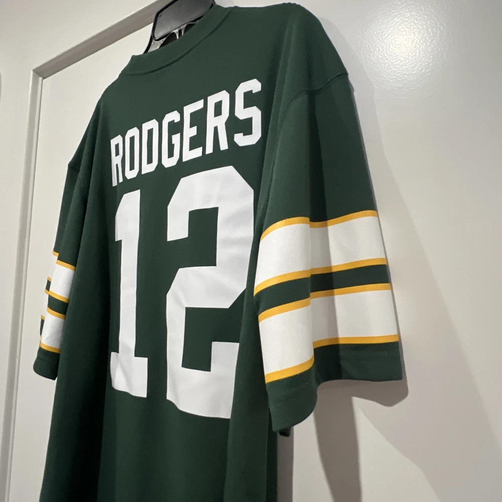 Aaron Rodgers #12 Green Bay Packers Men’s Green Team Apparel Jersey Mens Medium Will ship within 24hrs! Have no fear, offers encouraged here! Check out our other items! Please see photos for measurements and condition. Want more pix or have questions? Simply ask SORRY, NO RETURNS OR EXCHANGES Show your support for the Green Bay Packers with this medium-sized men's jersey featuring the iconic number 12 of Aaron Rodgers. Immerse yourself in the spirit of the game with this official Team Apparel piece, designed for the devoted fan who celebrates the regular season and beyond. Crafted in the team's signature green, this jersey is not only a symbol of your favorite NFL team but also a testament to the legacy of one of its most celebrated players. Whether you're at the stadium or enjoying the game from home, this jersey ensures you're decked out in genuine fan gear.
