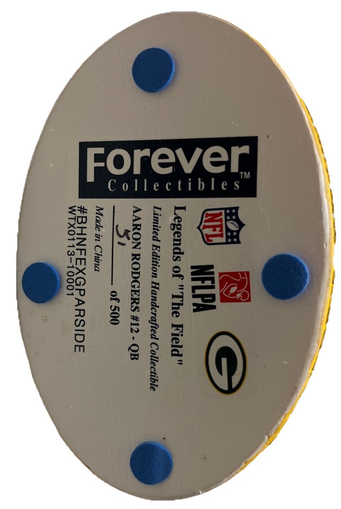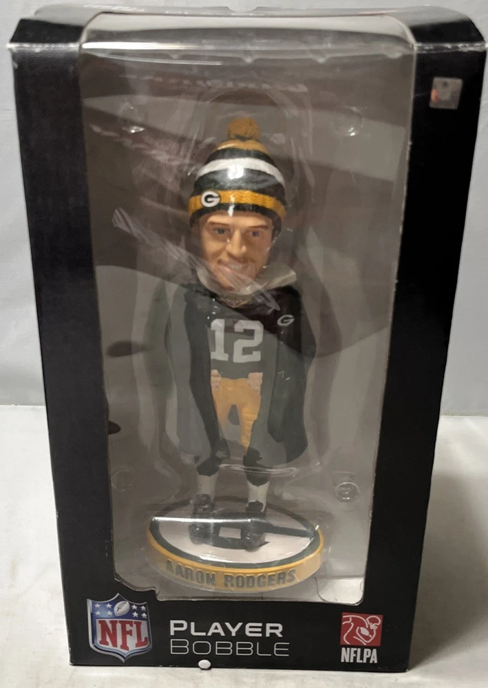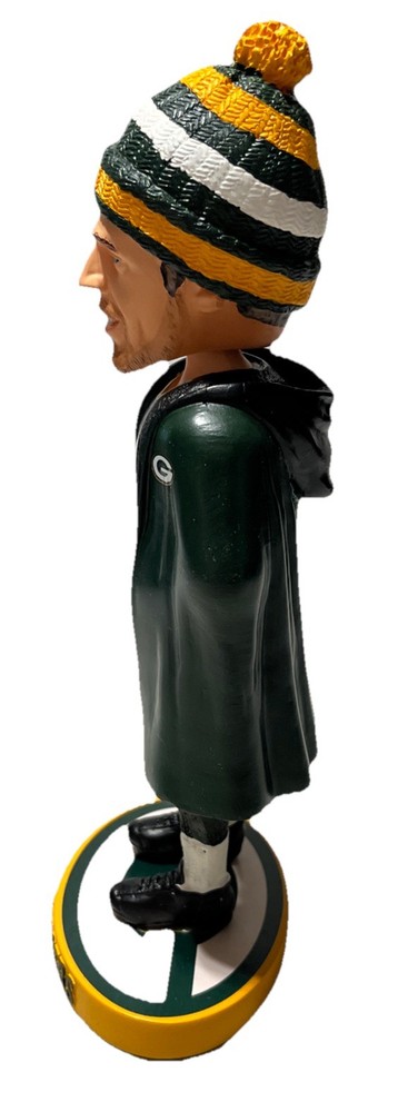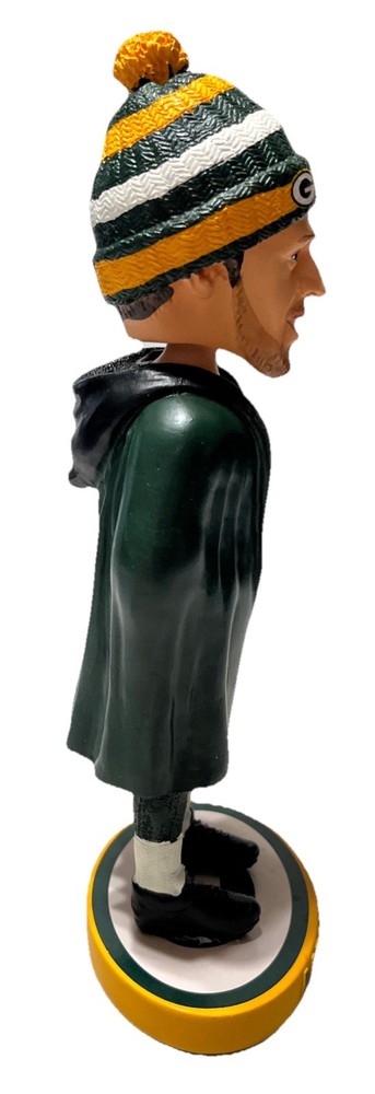 The Aaron Rodgers Sideline Coat Stocking Cap Bobblehead is a limited edition collectible featuring the Green Bay Packers quarterback. Officially licensed by the National Football League (NFL), this bobblehead showcases Rodgers in his game-day attire, making it a must-have for any dedicated Packers fan. With only 500 pieces available, this unique item is a special addition to any football memorabilia collection. Show your support for the Green Bay Packers and Aaron Rodgers with this exclusive bobblehead.