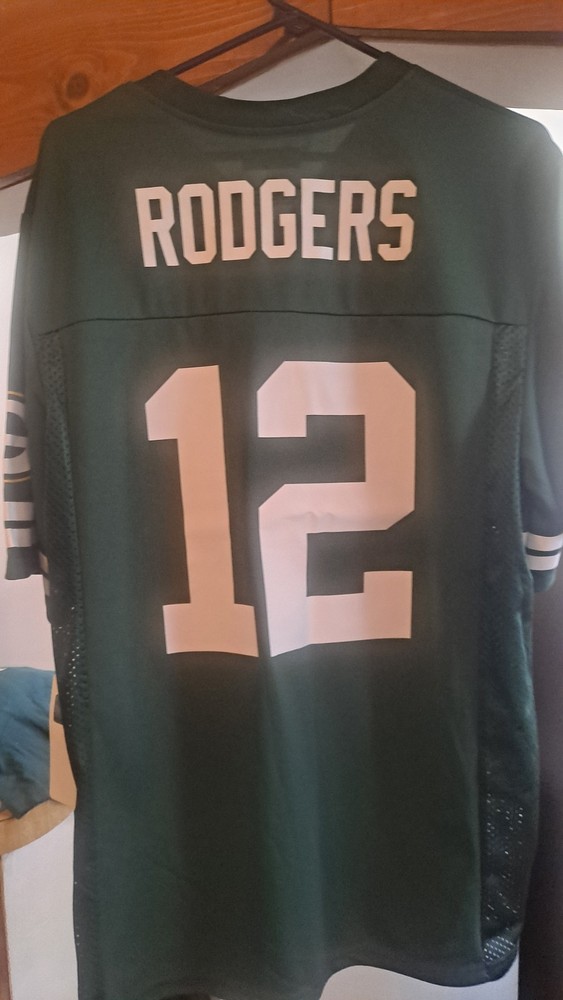 This product is a men's medium Aaron Rodgers Green Bay Packers jersey by NFL Team Apparel. It is officially licensed by the National Football League and features the team colors of green. The jersey is designed for the regular season and has a capacity of 16 oz. This item is perfect for fans of the Green Bay Packers and football enthusiasts looking to show their support for the team. It is a high-quality product made in Guatemala.