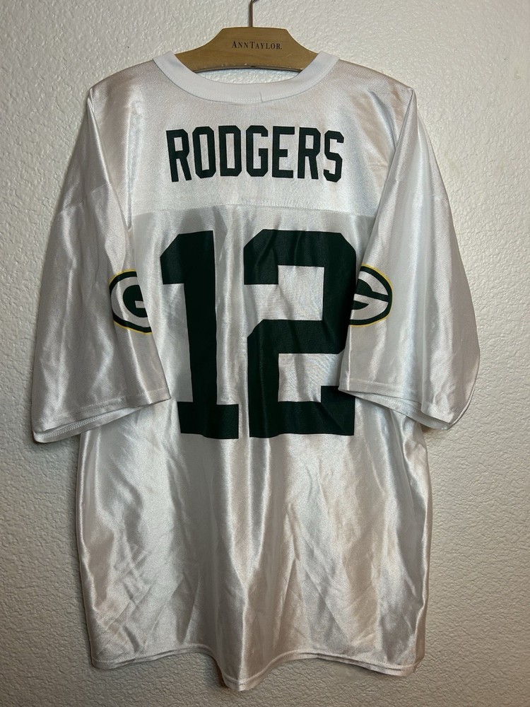 The product is an Aaron Rodgers #12 Green Bay Packers NFL Team Apparel white jersey in Men's XL size. This officially licensed jersey is perfect for any fan of the Green Bay Packers and Aaron Rodgers. Made of high-quality materials, this jersey is designed to represent the team and player in style. Whether you're watching a game or just showing support for your favorite team, this jersey is a must-have for any football enthusiast.