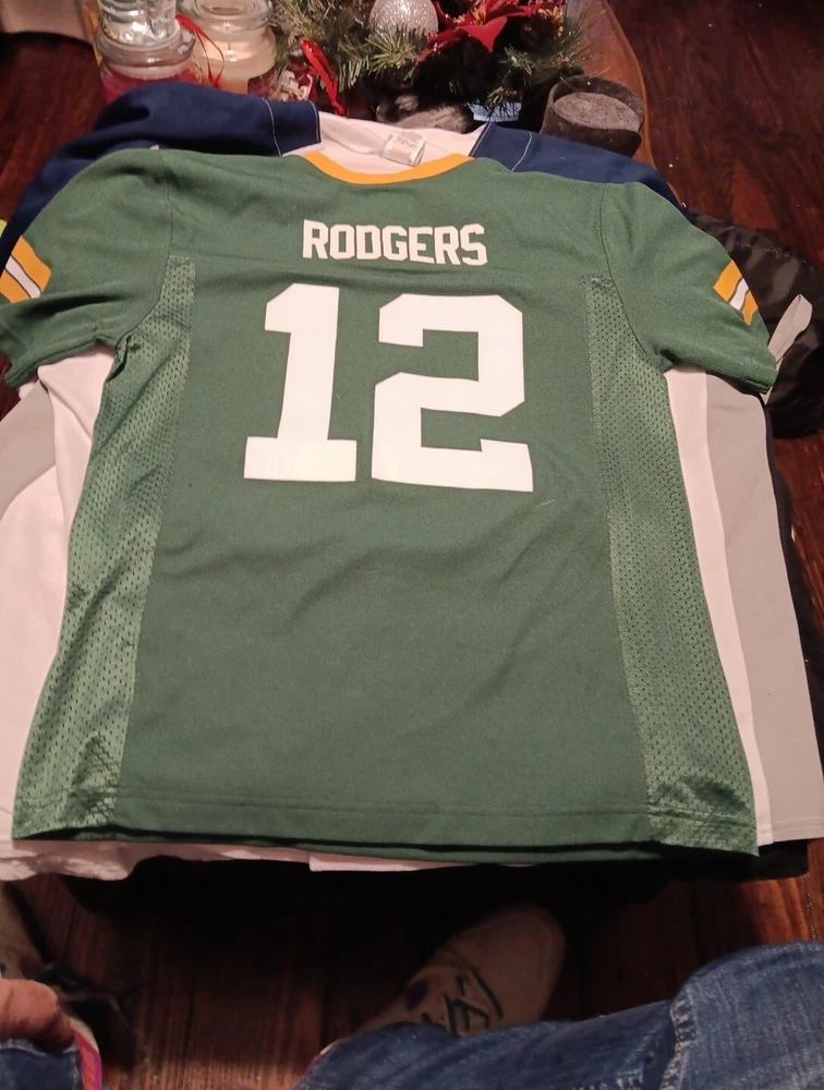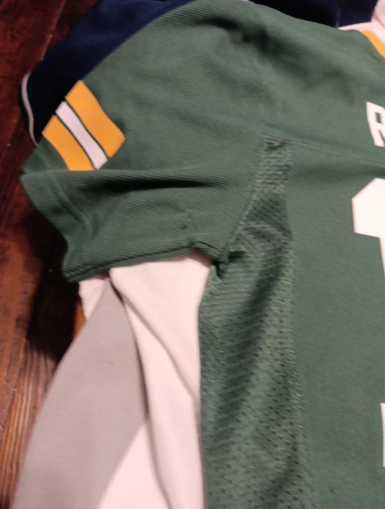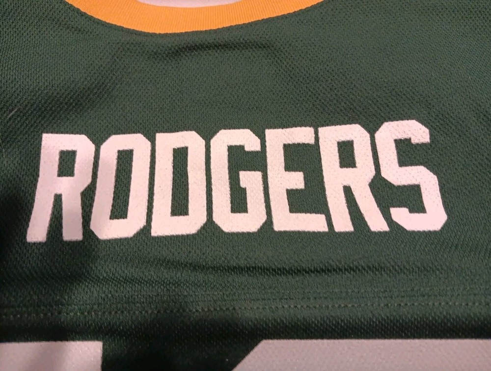 Get your child ready for game day with this vibrant green Aaron Rodgers jersey from Team Apparel. Made in China, this unisex children's jersey is perfect for any young fan of the Green Bay Packers. With its comfortable fit and eye-catching design, this jersey is sure to become a staple in any young fan's wardrobe. Featuring the iconic Team Apparel brand and officially licensed by the NFL, this jersey is perfect for any fan looking to show their support for the Green Bay Packers. Whether they're cheering from the stands or playing a game of touch football with friends, this jersey is sure to make them feel like a part of the team. So help your child show their support for the Packers with this must-have jersey.