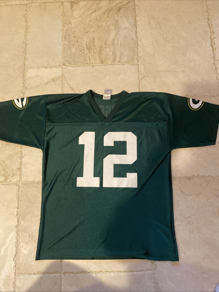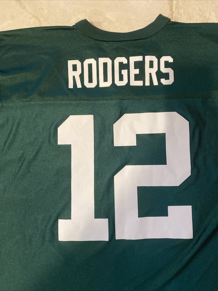 Aaron Rodgers XL Jersey - Green - Green Bay Packers NFL Team Apparel Used Look at Images and ask questions. Little snags throughout. Stain on numbers.