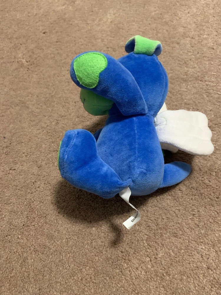 Abbey Press 2000 Blue Green Stuffed Angel Dog Hearts 9”. Condition is Excellent. This stuffed dog also is a bean bag on his bottom to let him sit up. He has white wings across his back and hearts on his paws, nose, and wings. Smoke free home.