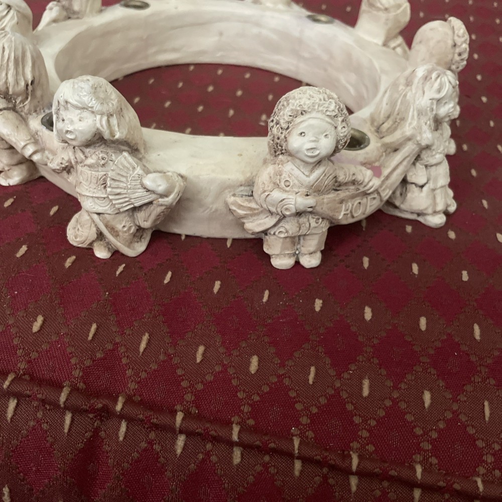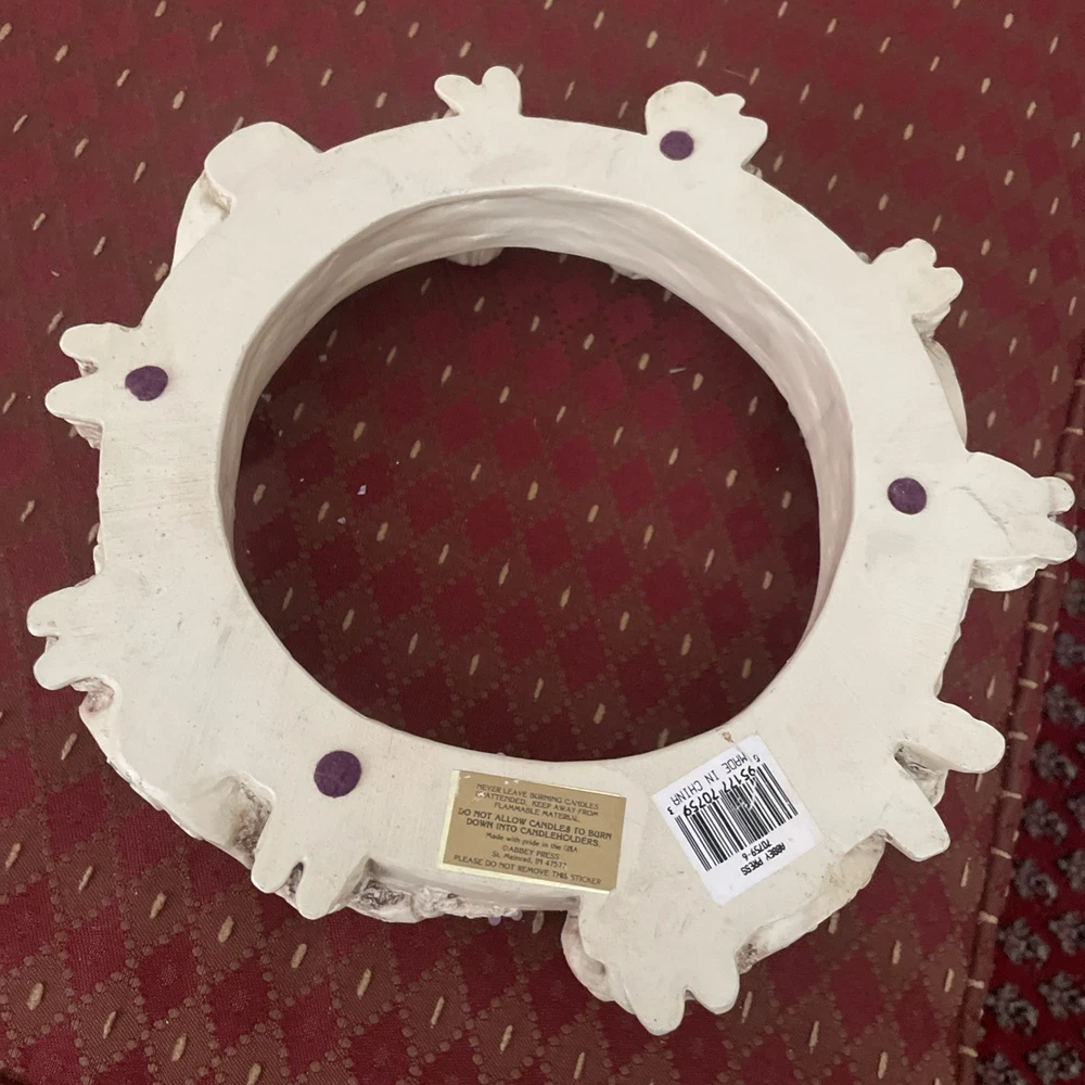 The Abbey Press Advent Wreath Candle Holder is a vintage piece from the 1990s that features a round shape with a medium size and beige color. Made of resin, this candle holder is designed with a Christmas theme, perfect for celebrating the advent season. With a pattern of all-over, this candle holder is a beautiful addition to any room during the holiday season. Made by Abbey Press, this collectible item originates from China and is a unique piece to add to your holiday decor collection.