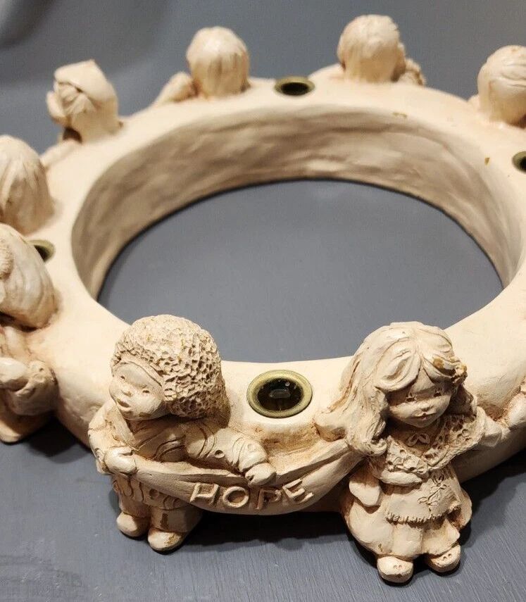 Crafted with care, the Abbey Press Advent Wreath and Candle Holder embodies the true spirit of the season. With its charming circular shape and a width of 10 inches, it serves as a delightful centerpiece that captures the essence of peace, love, hope, and joy. The wreath, representing the Children character family, is a resin-made piece that promises to add a touch of nostalgia to your Christmas decor, having been manufactured in the 1980s.Ideal for those who cherish the warmth of holiday traditions, this advent wreath is designed to enhance your festive celebrations. Measuring 10 inches in length, it fits perfectly on any mantel, shelf, or table, making it a versatile addition to your holiday lineup. The unbranded nature of this piece ensures that it will blend seamlessly with your existing decorations, creating a harmonious and inviting atmosphere in your home.