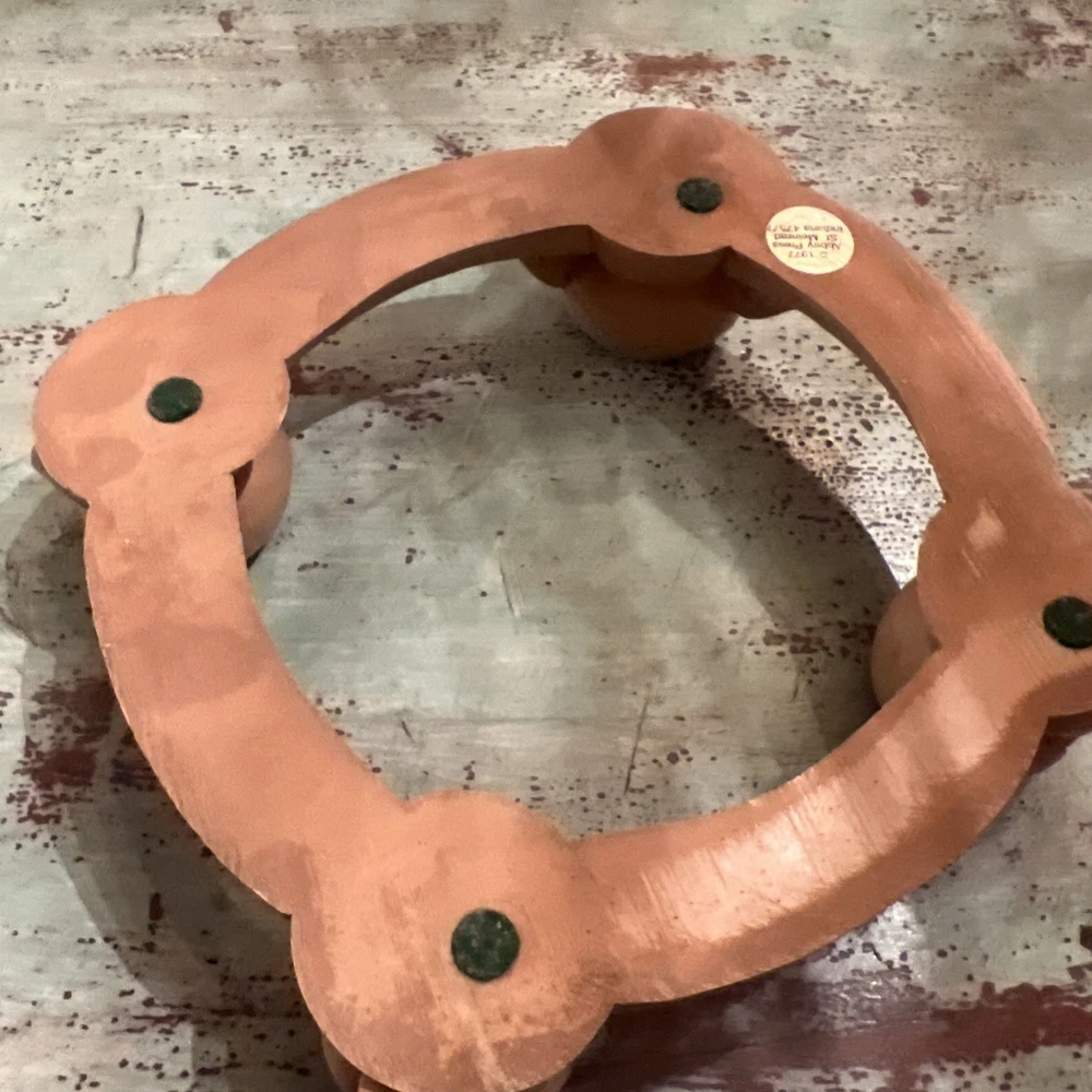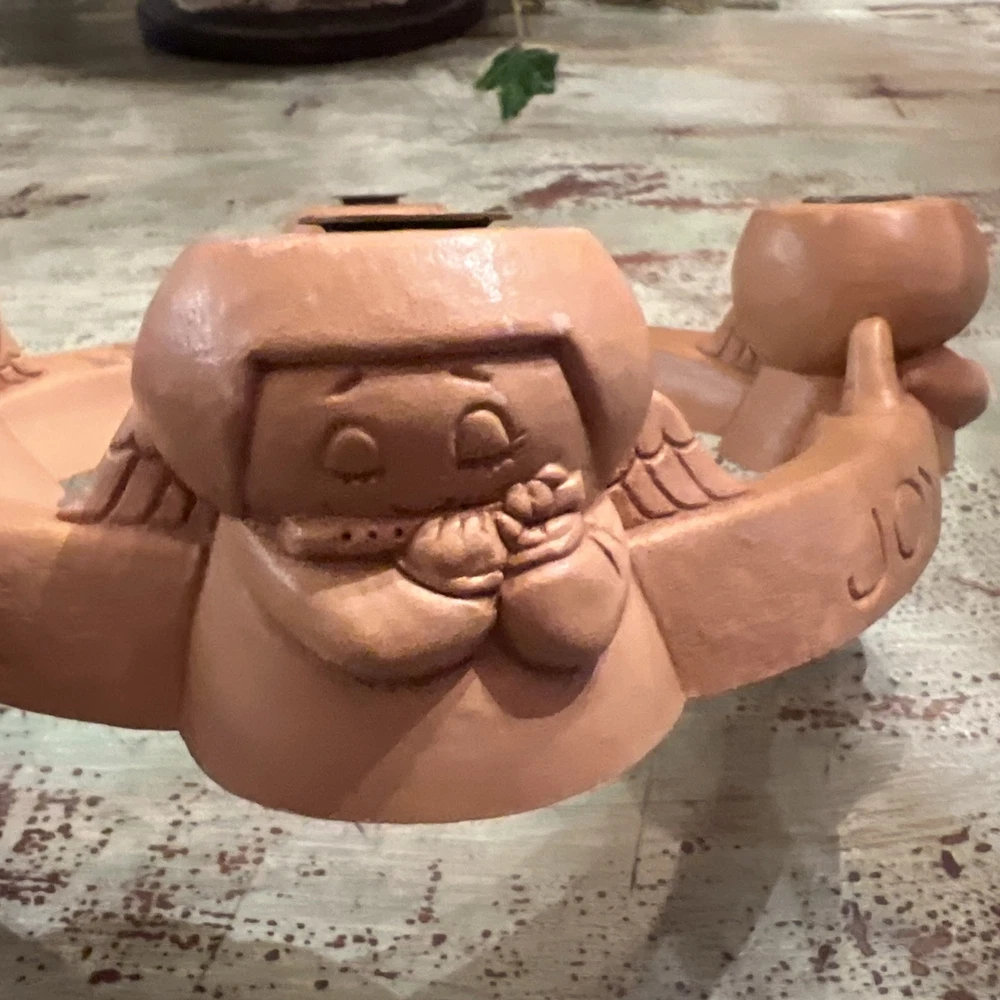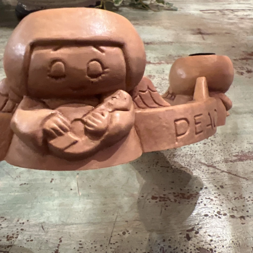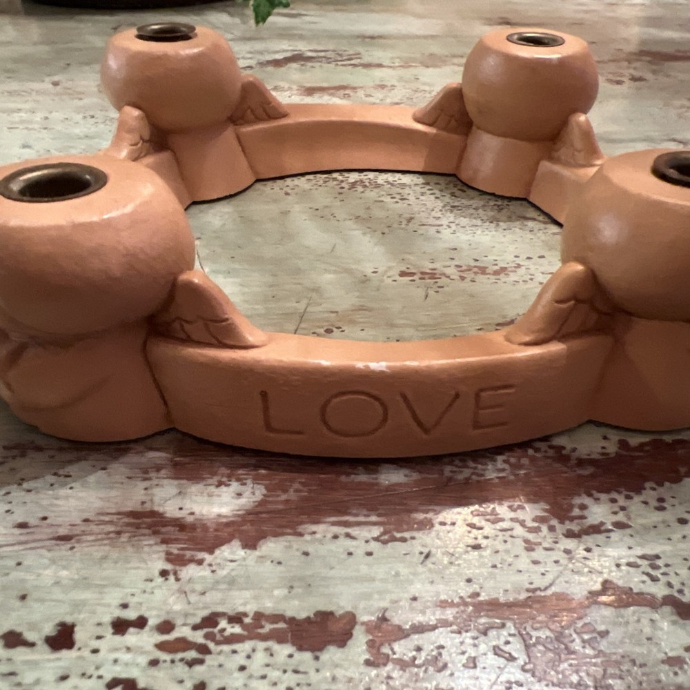 This Abbey Press Advent Candle Holder features angels surrounding a wreath, symbolizing Hope, Love, and Peace. Made of beige resin, it measures 8x8x2 inches and comes in a box. This original Christmas-themed item is designed for holding Advent candles and is perfect for holiday decorating. Box 116