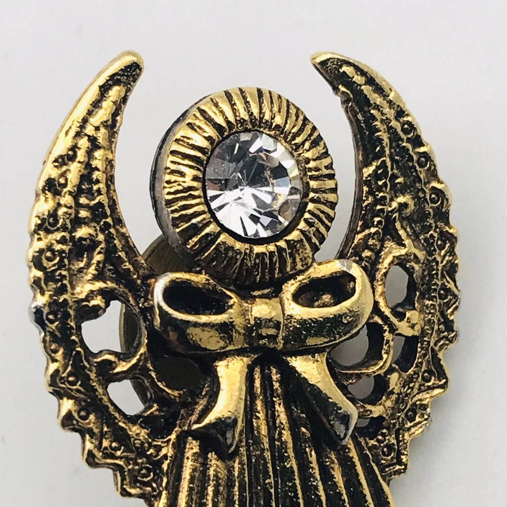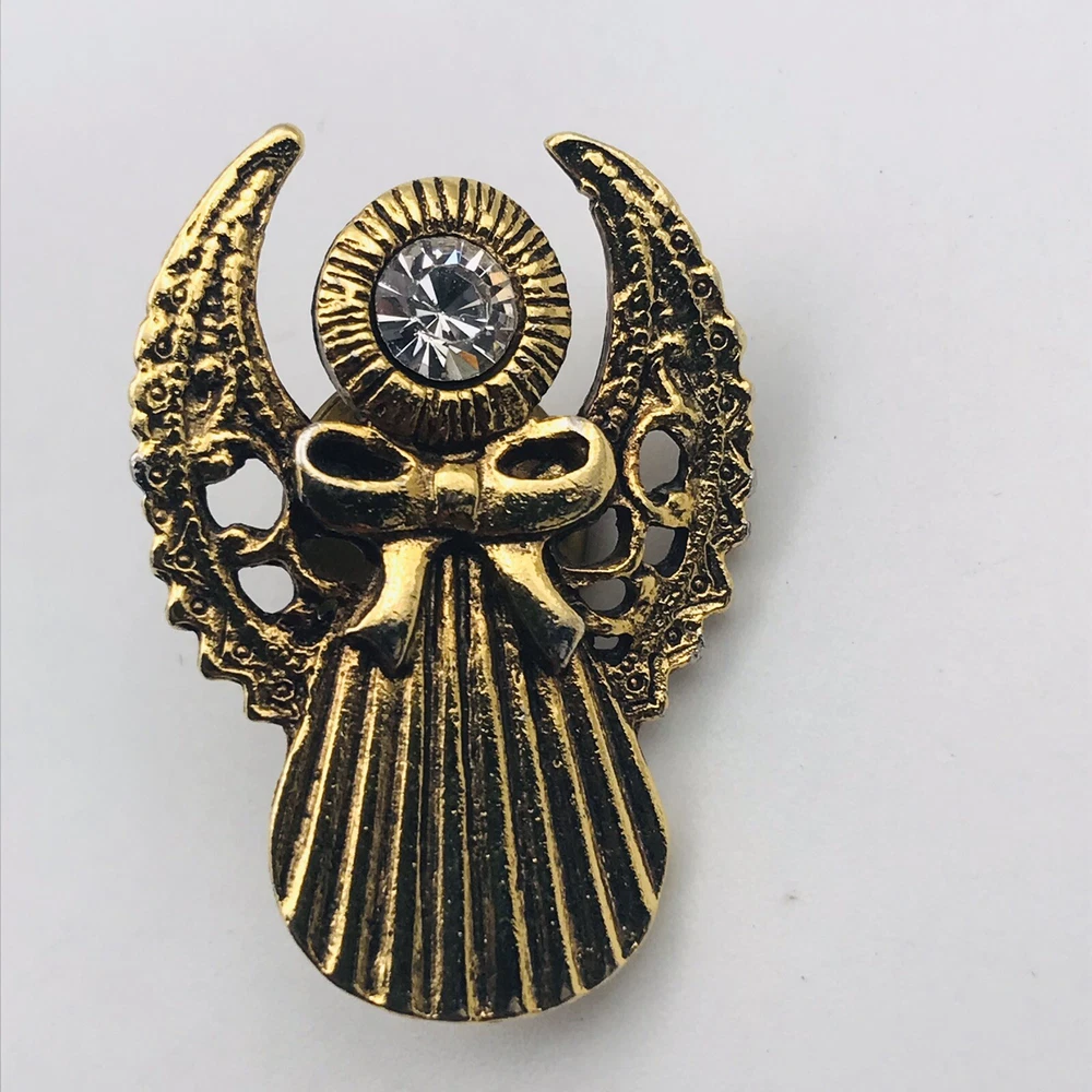 Abbey Press Gold Tone Chrystal Rhinestone 3D Guardian Angel Tie Lapel Pin 1 1/4" x 7/8" -- In good condition. Please see detailed photos. Shipping Special for All Jewelry, Pins, Patches & Buttons! Purchase of Three (3+) or More Jewelry, Pins, Patches & Buttons will Ship for Free! eBay should automatically create an invoice with the discount. If it doesn't please let me know and I will send you an invoice as soon as I can. Thank You! MY SELLER GUARANTEE Thank you for visiting my auction. Buy with confidence. Every item we sell is guaranteed to be genuine. Based upon my feedback rating (2000+) know that customer satisfaction is my #1 concern. So, bid with confidence as you know I will stand behind all of our items. ITEM(S) EXACTLY AS SHOWN IN THE PICTURES. PLEASE SEE ALL PICTURES FOR FULL ITEM CONDITION AND DETAILS. SEE OUR FEEDBACK! Buy with confidence! USA SELLERS. I accept PayPal. I also combine shipping on multiple orders. I can oftentimes combine shipping for one low price- as long as the items won are similar in size, etc. For instance, if you win a group of 5 cards in 5 separate auctions, I should be able to group them all together in one padded envelope for a low shipping price. Be sure to let me know if you think combined shipping makes sense for your order. Also, when paying for multiple winnings, please pay with one combined payment.