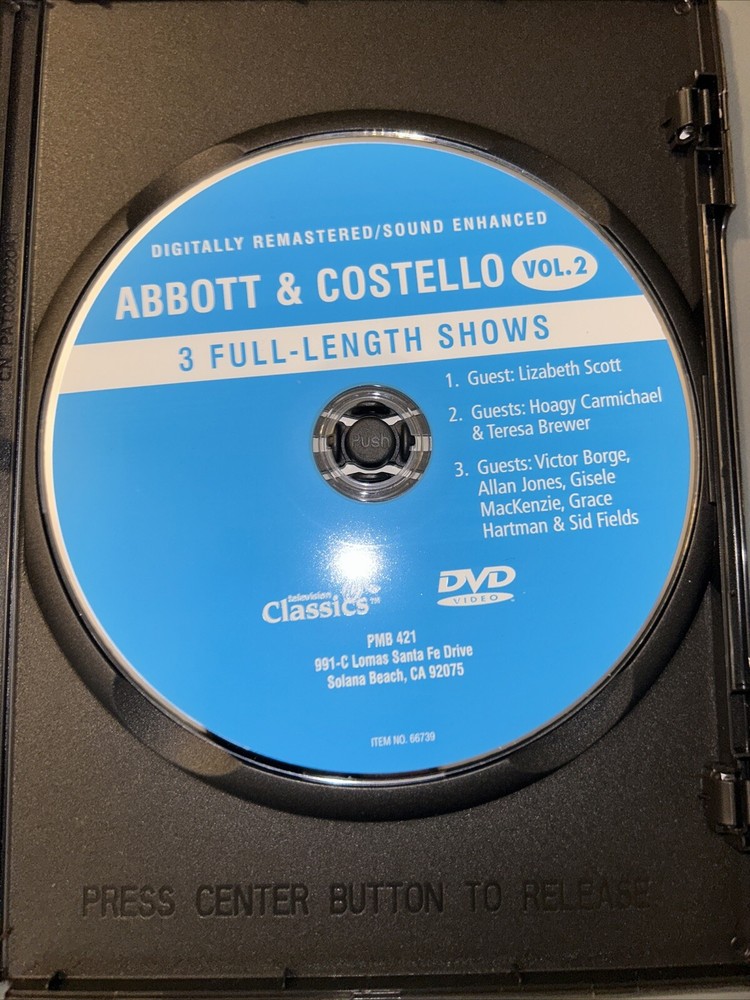 Enjoy classic comedy with the Abbott & Costello DVD, featuring three full-length shows. This remastered edition includes digitally restored black and white films, with American English language and DVD region code 1 (US, Canada...). The tall/DVD case is perfect for any collector, and the unknown director adds to the mystery and charm of this classic comedy. Rated NR (not rated) and categorized under movies and TV, DVDs and Blu-ray discs, this Abbott & Costello DVD is a must-have for any comedy lover. The sub-genre of comedy and the studio of Keepsake Pictures ensure that you are getting high-quality entertainment. This DVD is a great addition to any collection and is perfect for a movie night with friends.