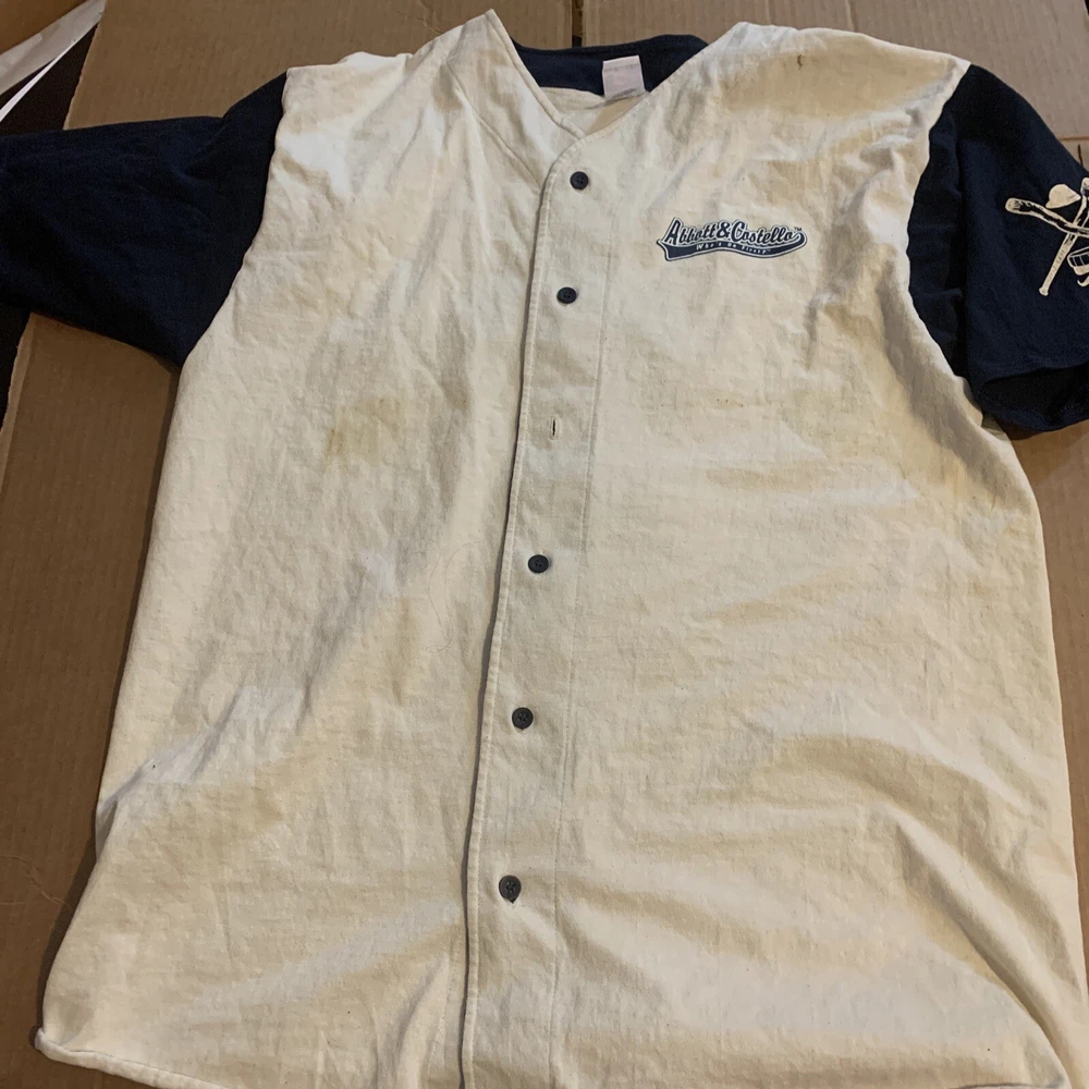 Abbott & Costello National Baseball Hall of Fame Jersey Whos on First #1 size XL. Please allow up to 5 business days for shipping and handling from date of purchase BluA05